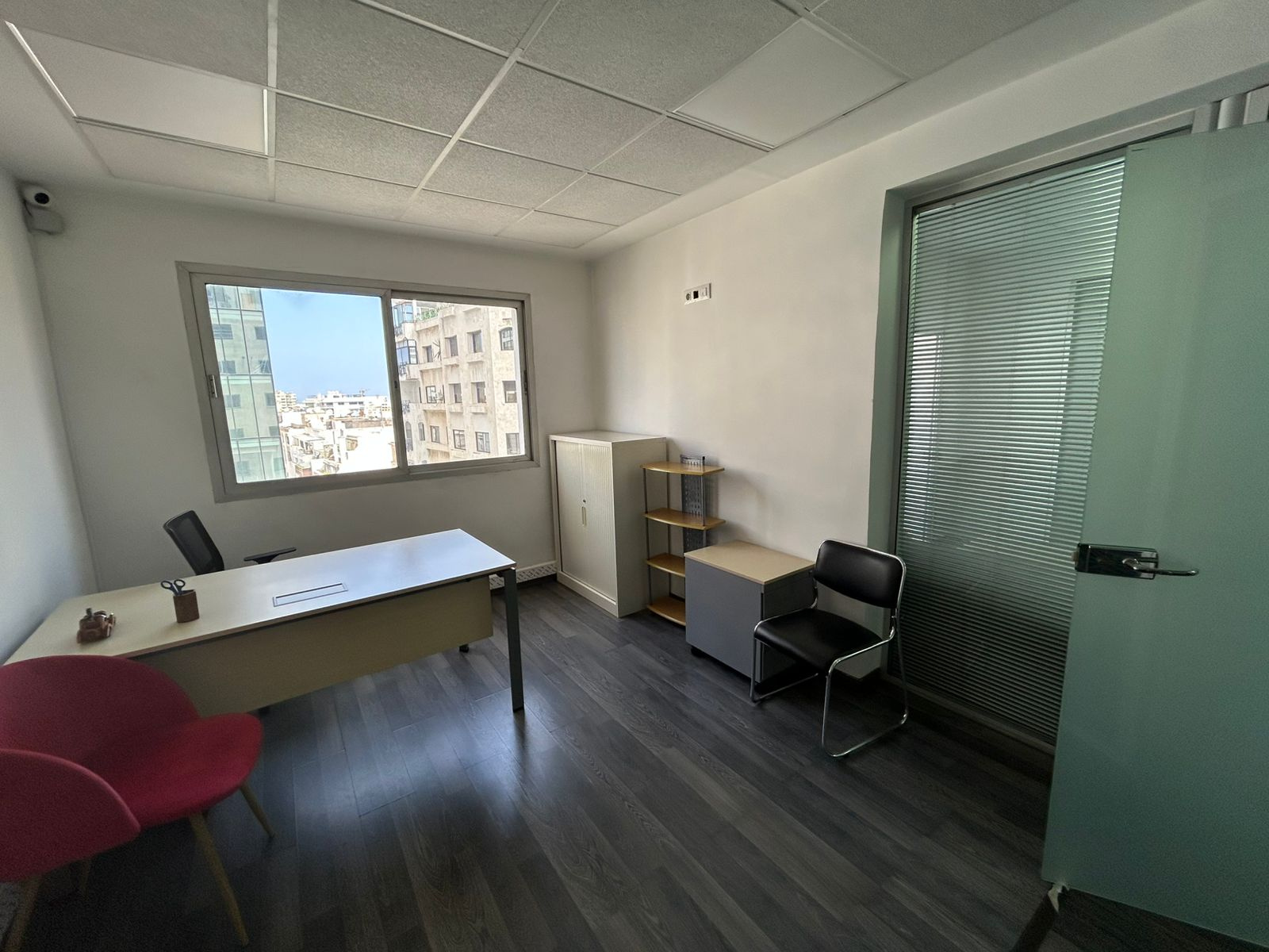 Le bureau est équipé de caméras de vidéosurveillance, et bénéficie d’un étage élevé avec belle luminosité naturelle.
