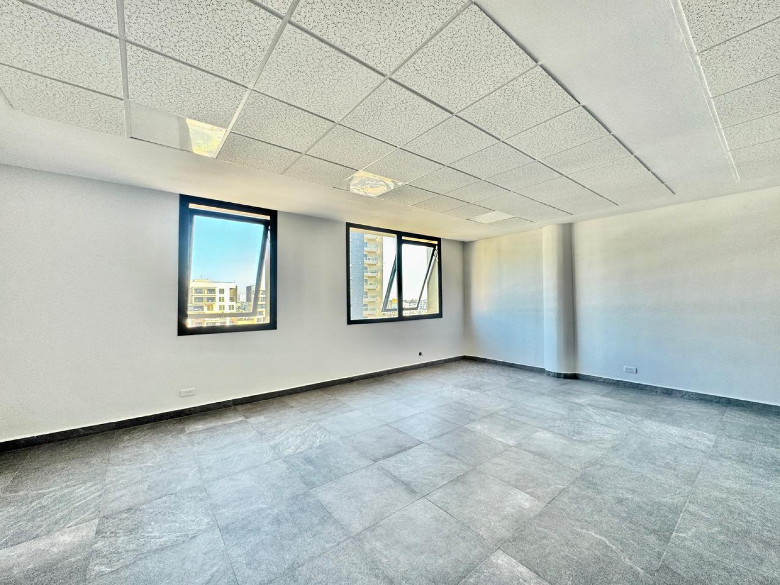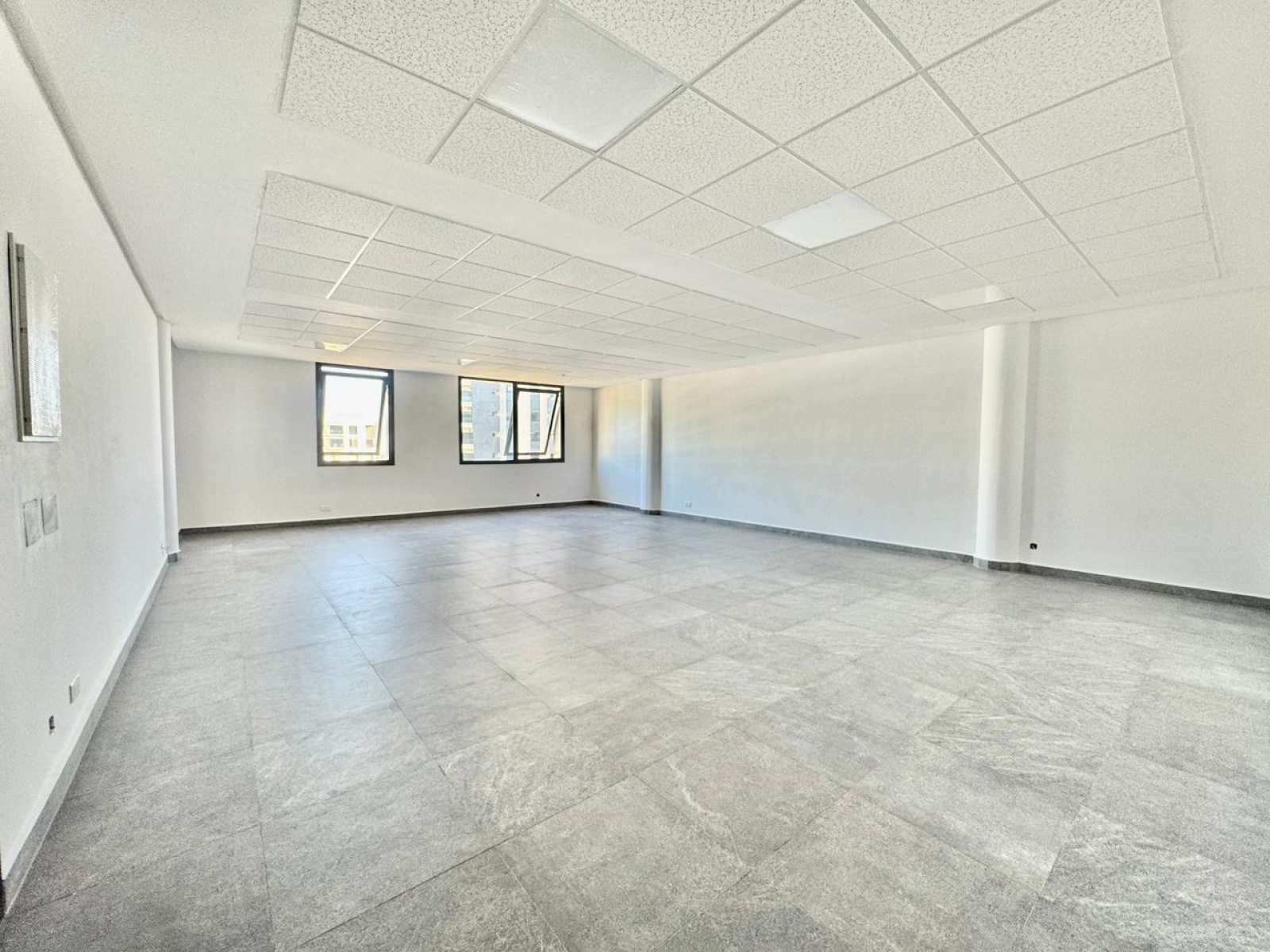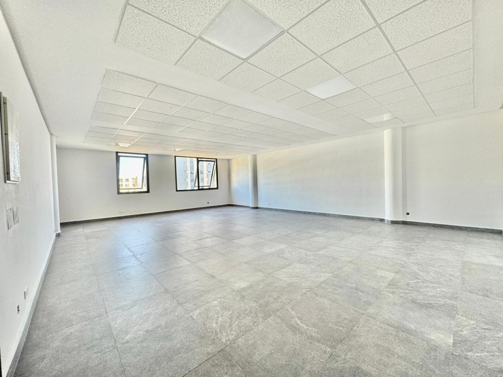 Ce bureau rare bénéficie d’un aménagement quasi complet : sols posés, faux plafond installé, luminaires en place et attentes pour climatisation.