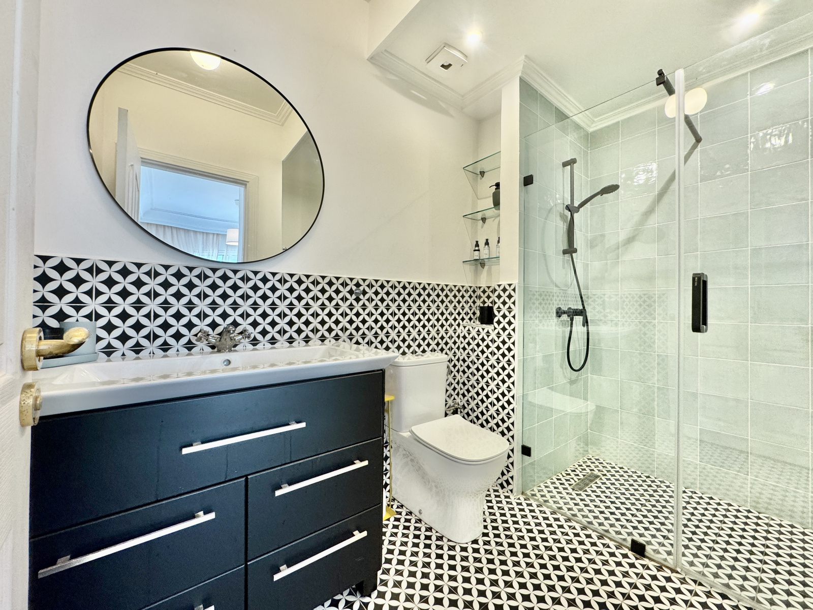 Les prestations sont de qualité : marbre au sol dans les pièces de vie, parquet dans les chambres, appartement traversant Est/Ouest, dernier étage, finitions modernes, emplacement premium au cœur du Triangle d’Or.