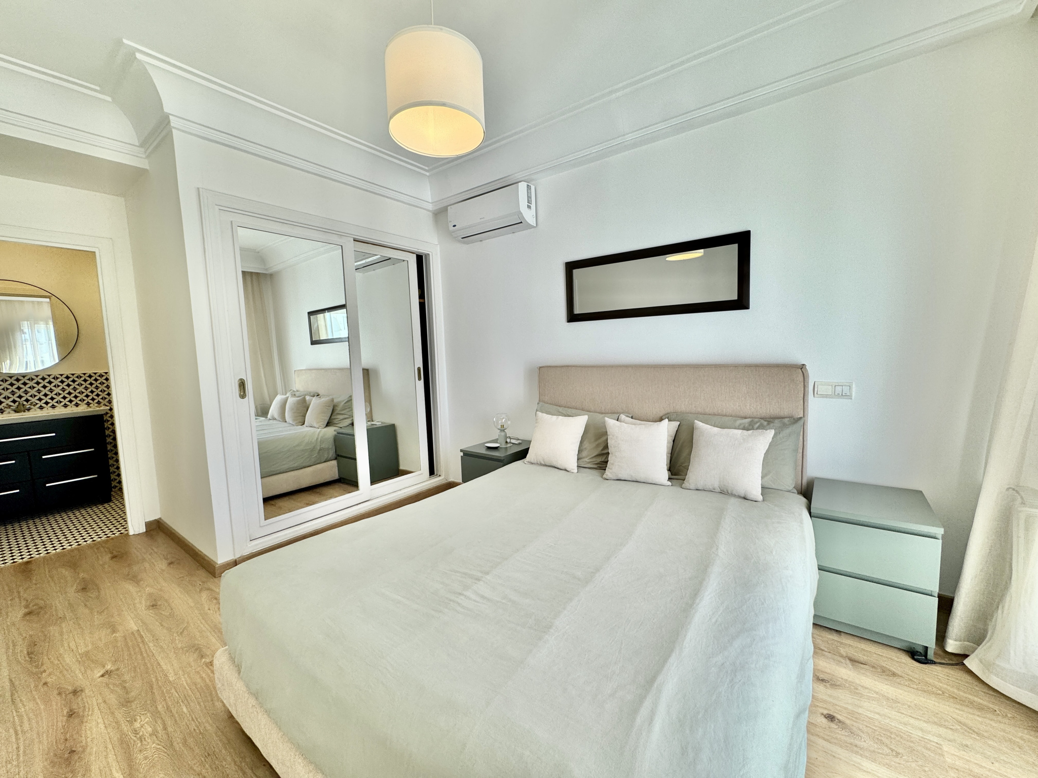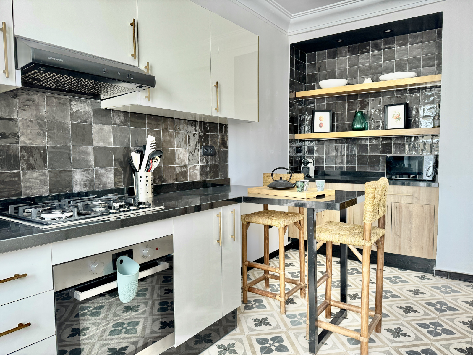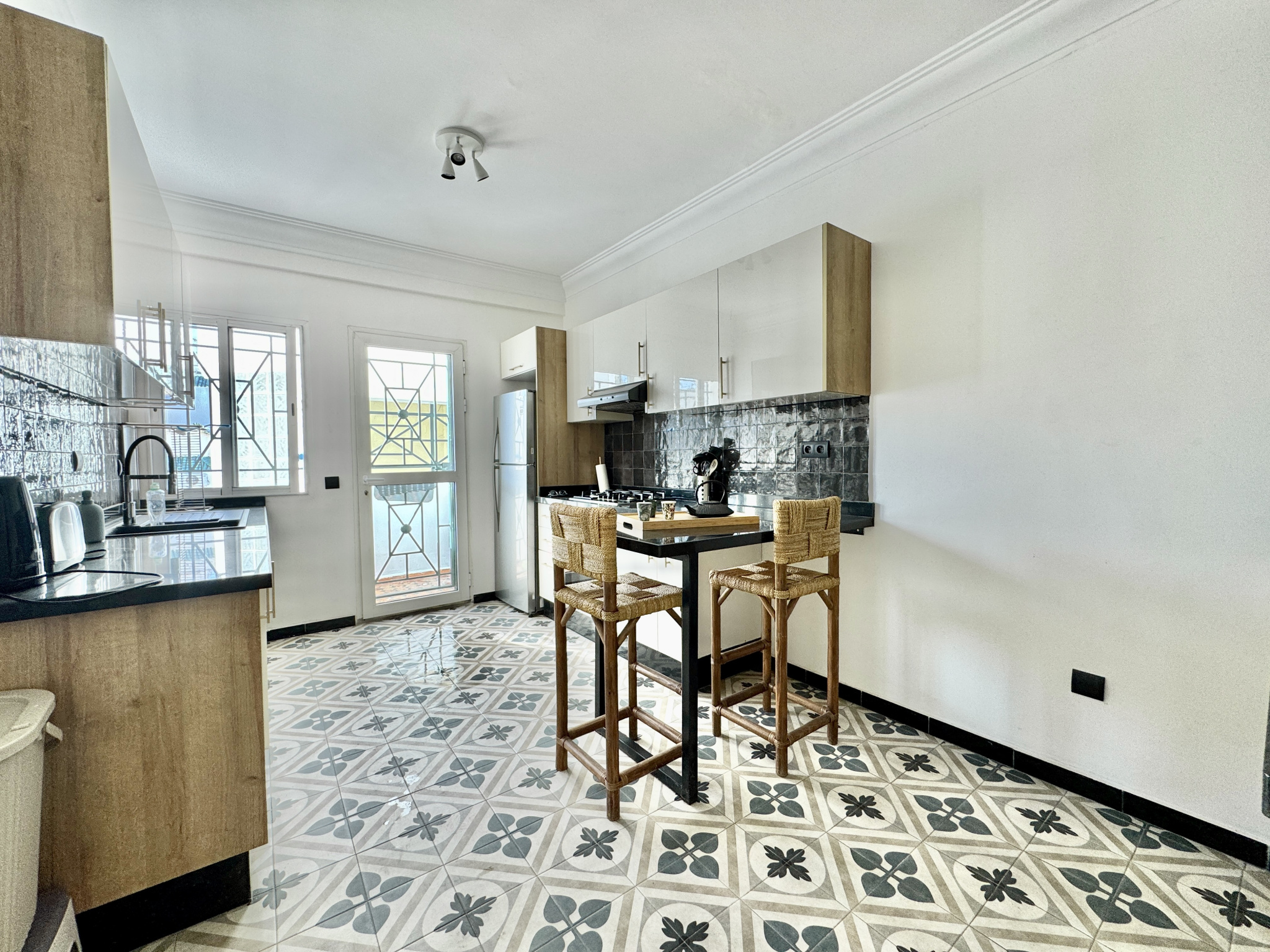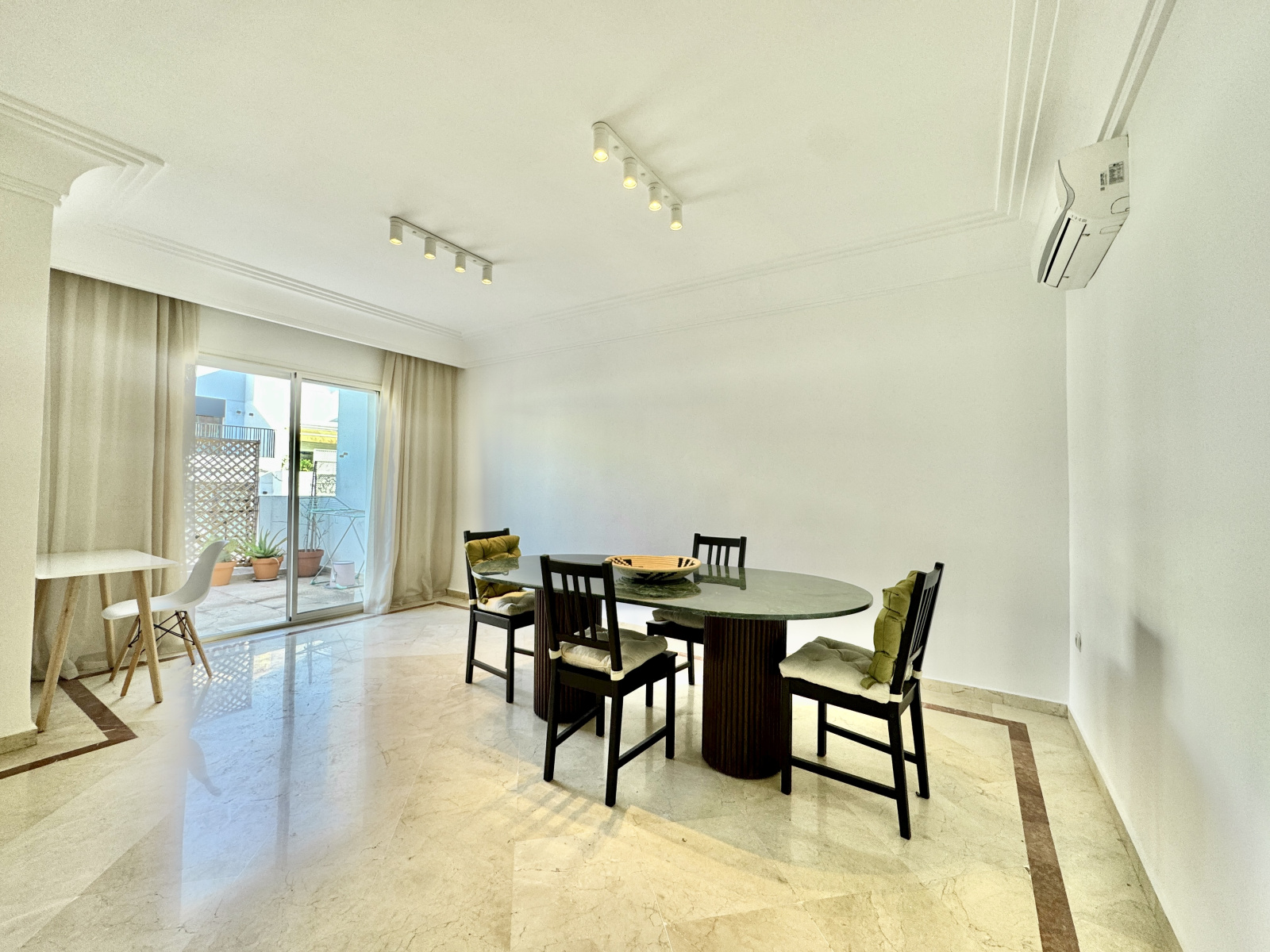 The Agency vous propose un appartement meublé traversant de 106 m², complété par une terrasse de 26 m², situé au dernier étage d’un immeuble sécurisé 24/7, au cœur du Triangle d’Or de Casablanca.
