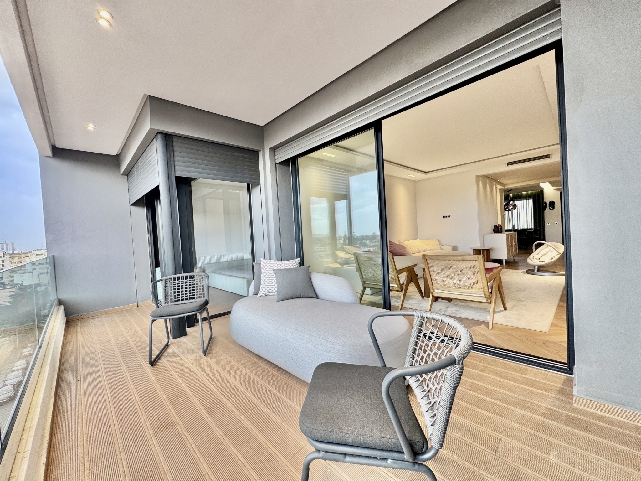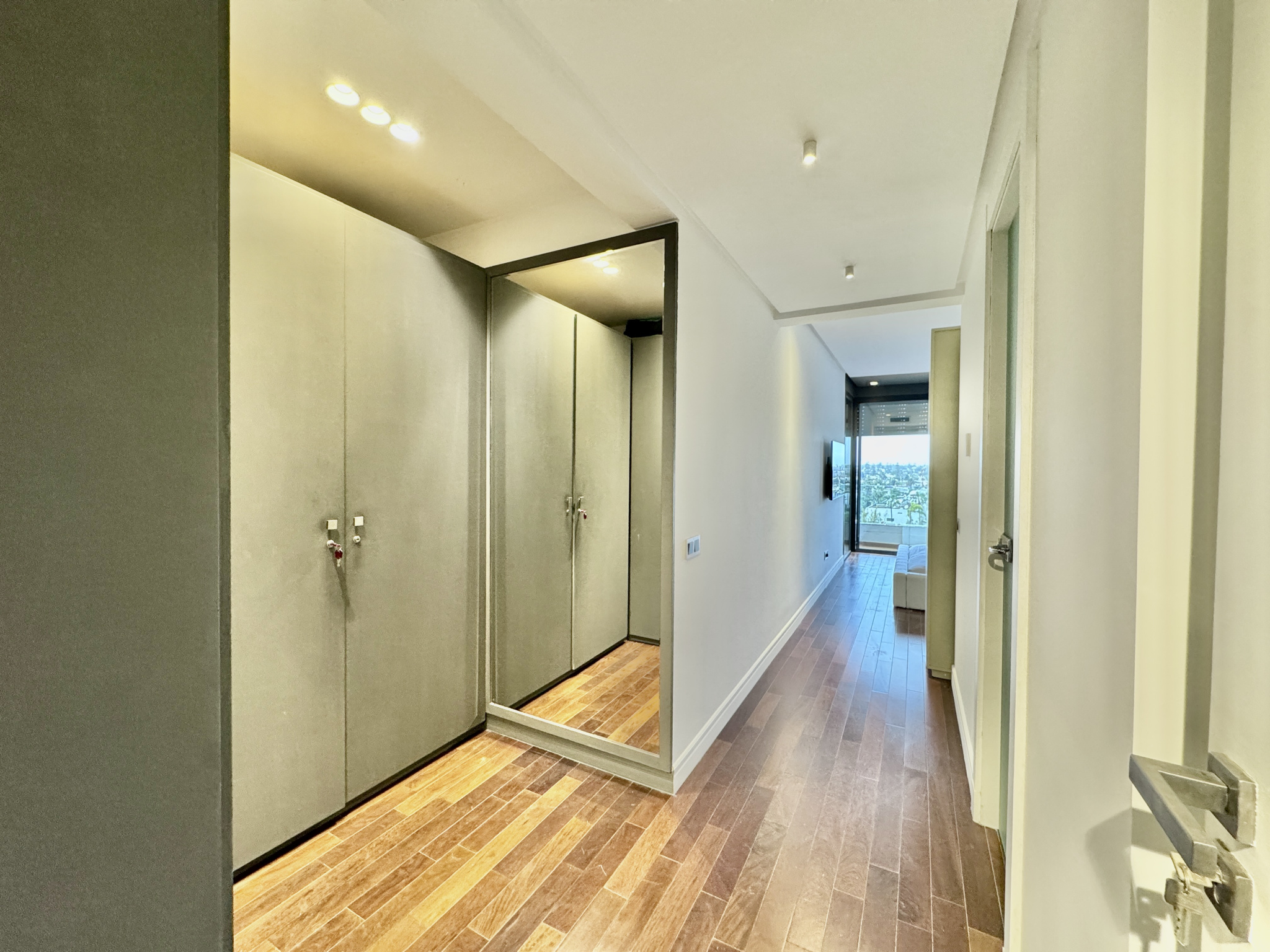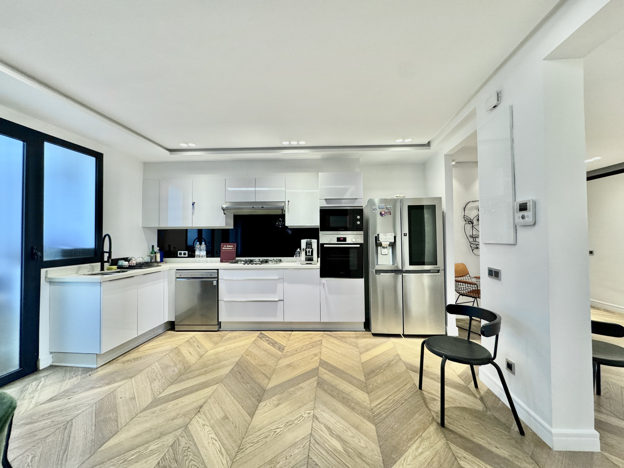 appartement traversant , mobilier design, parquet en bois massif, cuisine premium, salles de bain contemporaines, climatisation et chauffage centralisés, double vitrage, finitions soignées et emplacement recherché au CIL.