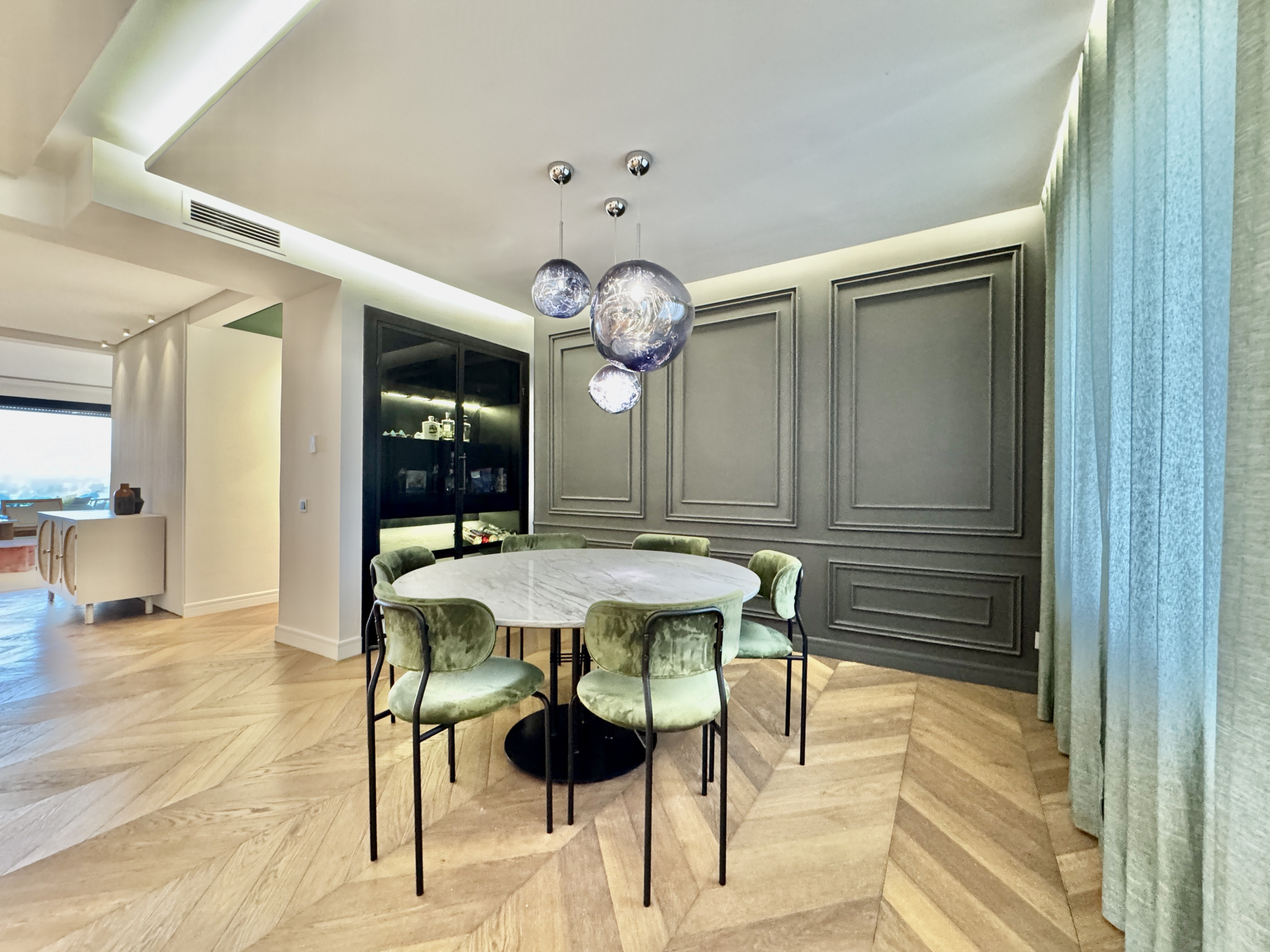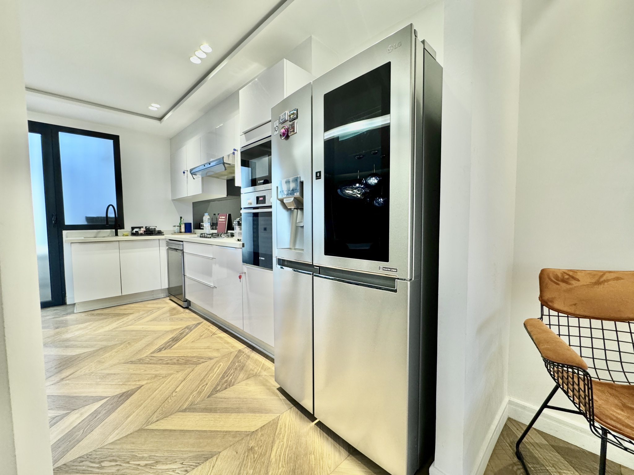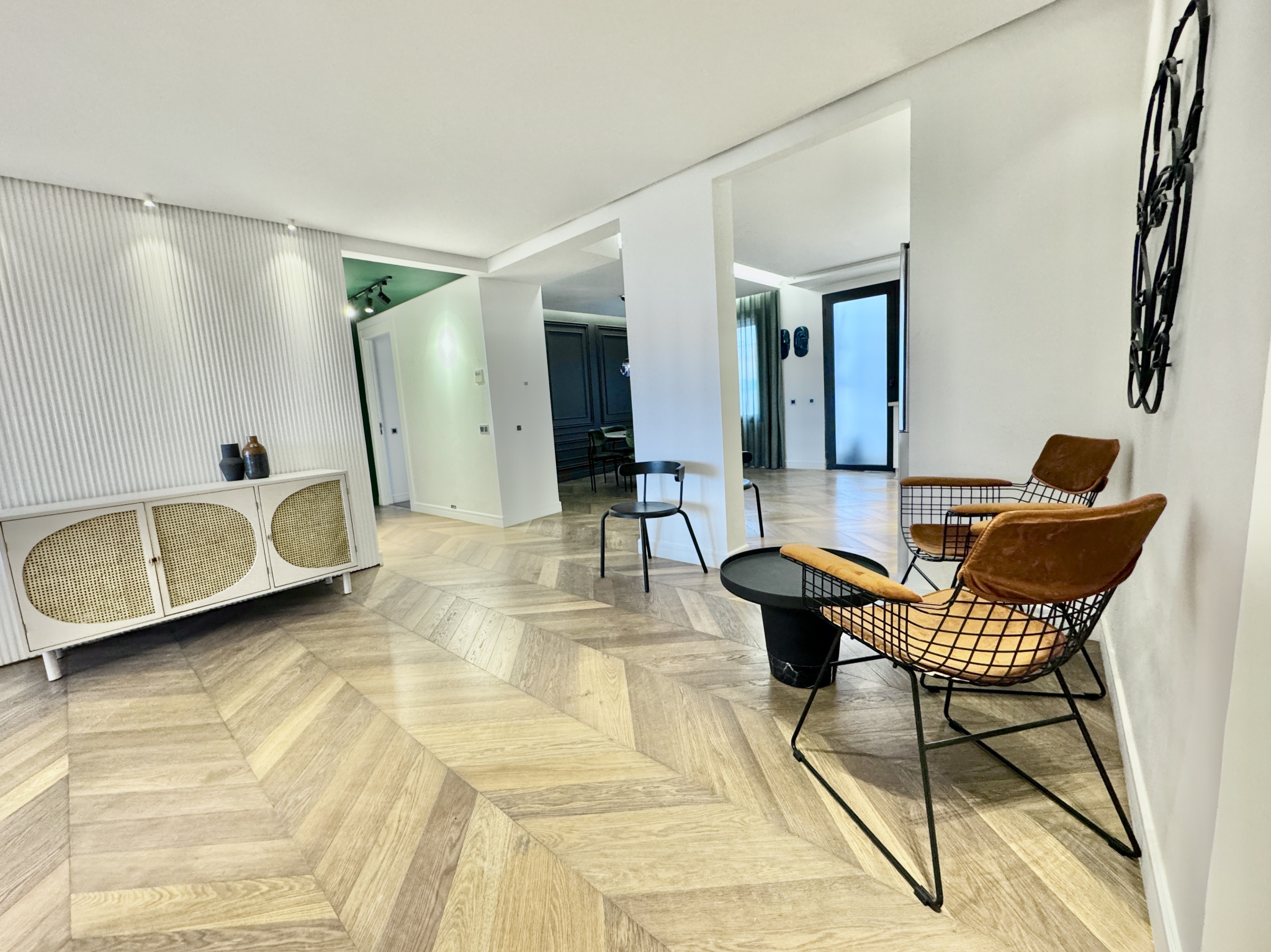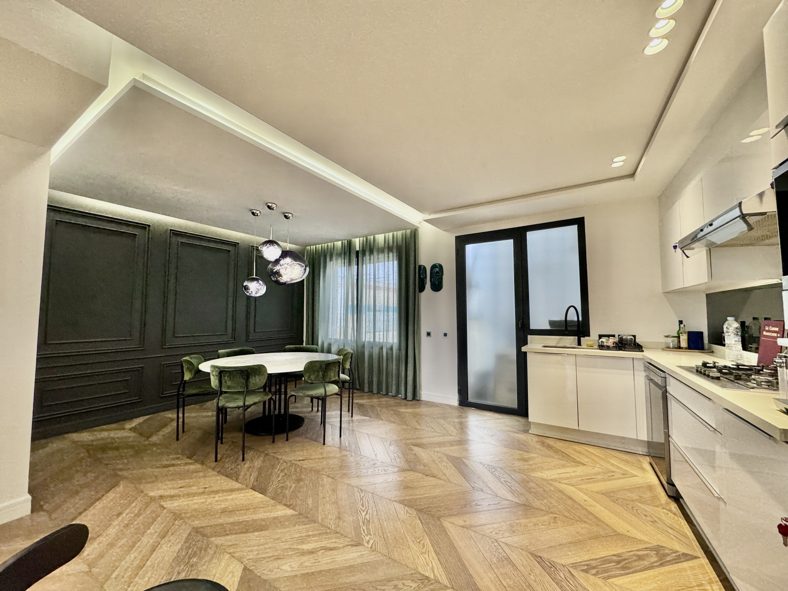 appartement traversant , mobilier design, parquet en bois massif, cuisine premium, salles de bain contemporaines, climatisation et chauffage centralisés, double vitrage, finitions soignées et emplacement recherché au CIL.