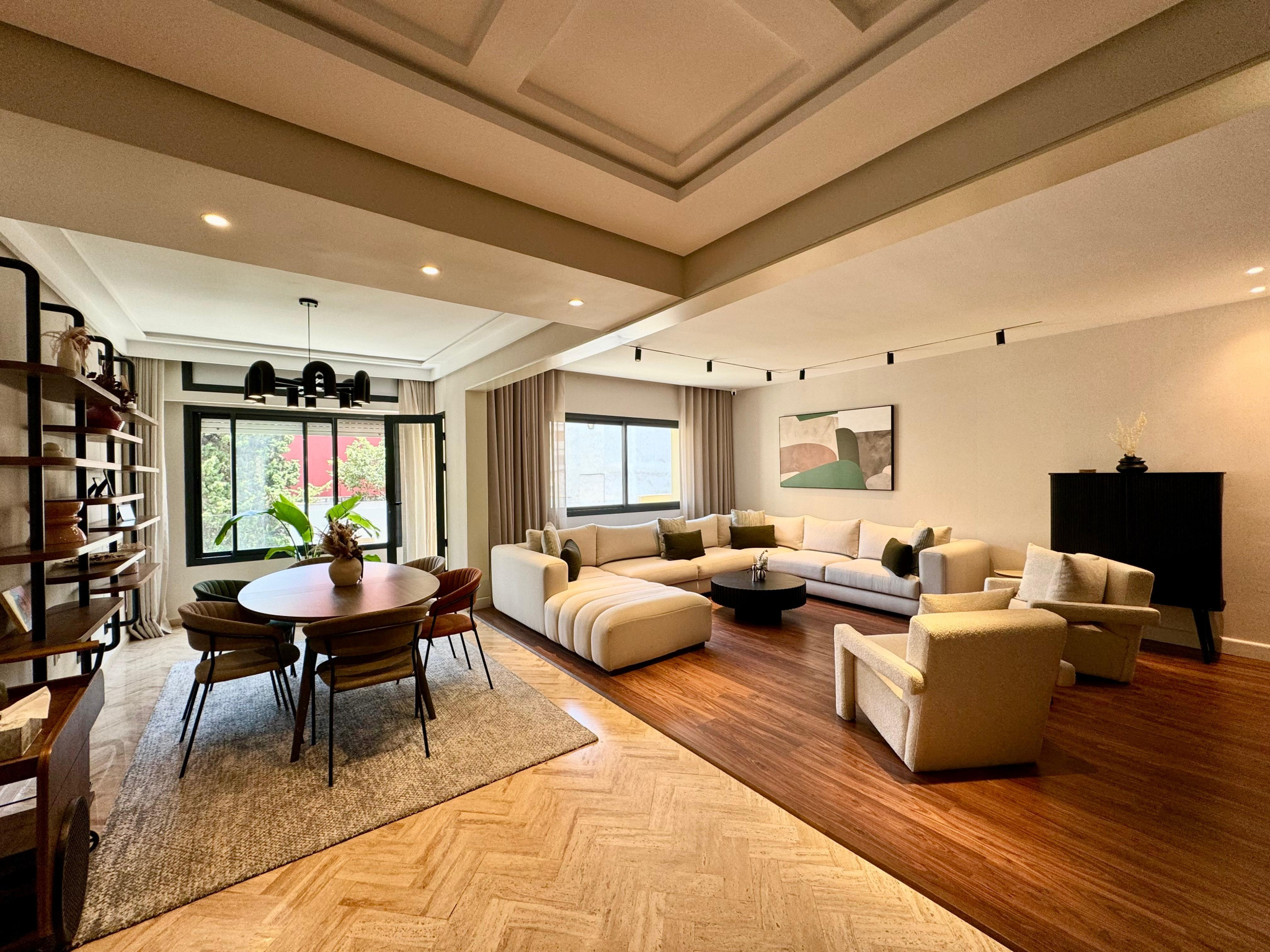 The Agency met à votre disposition un très bel appartement traversant de 120 m² situé au 2ème étage d'une résidence bien entretenue à proximité immédiate du Boulevard Massira et du Boulevard d'Anfa.