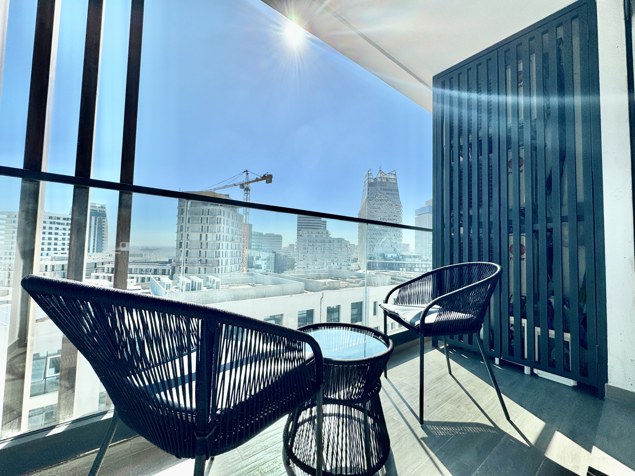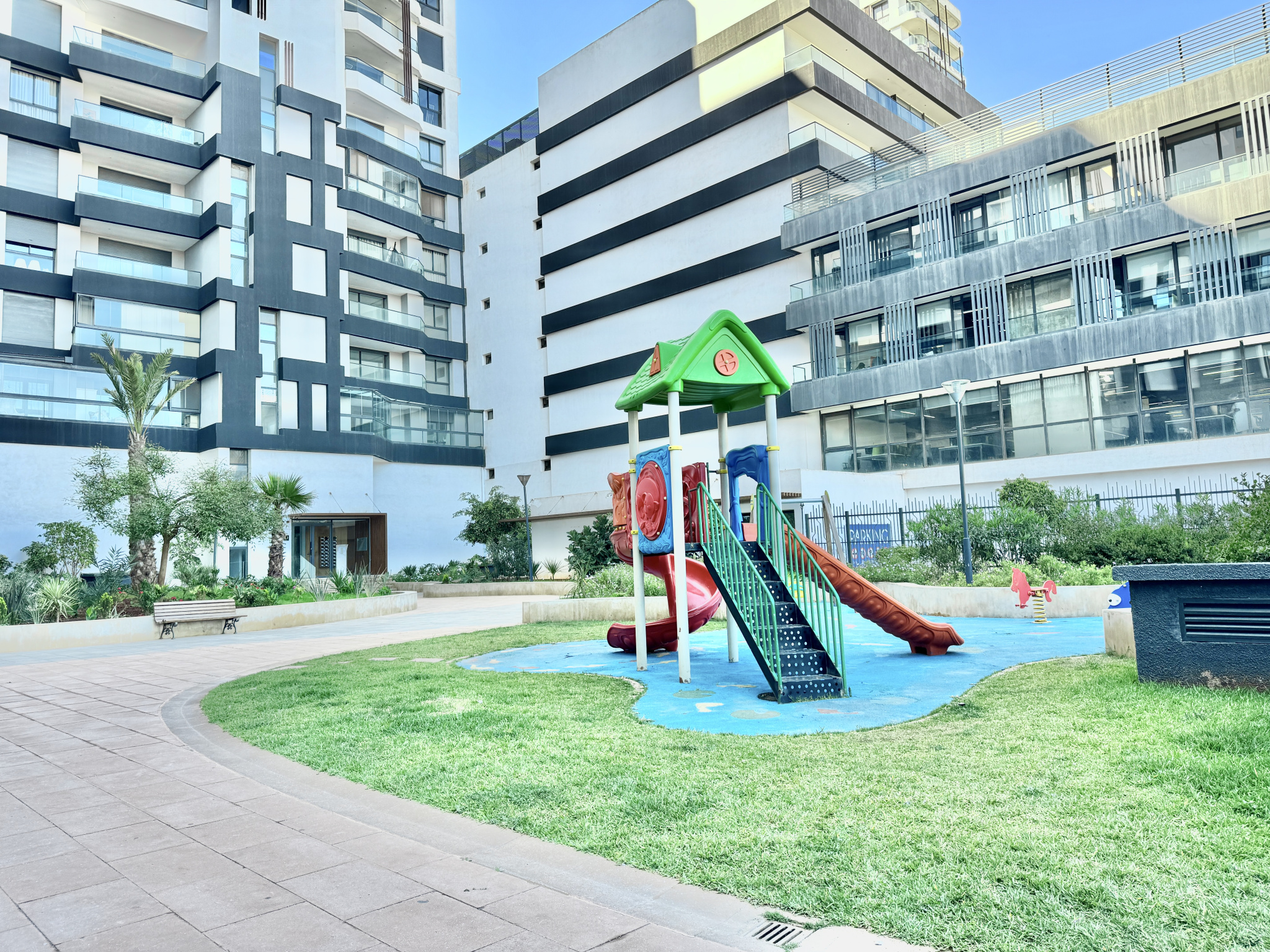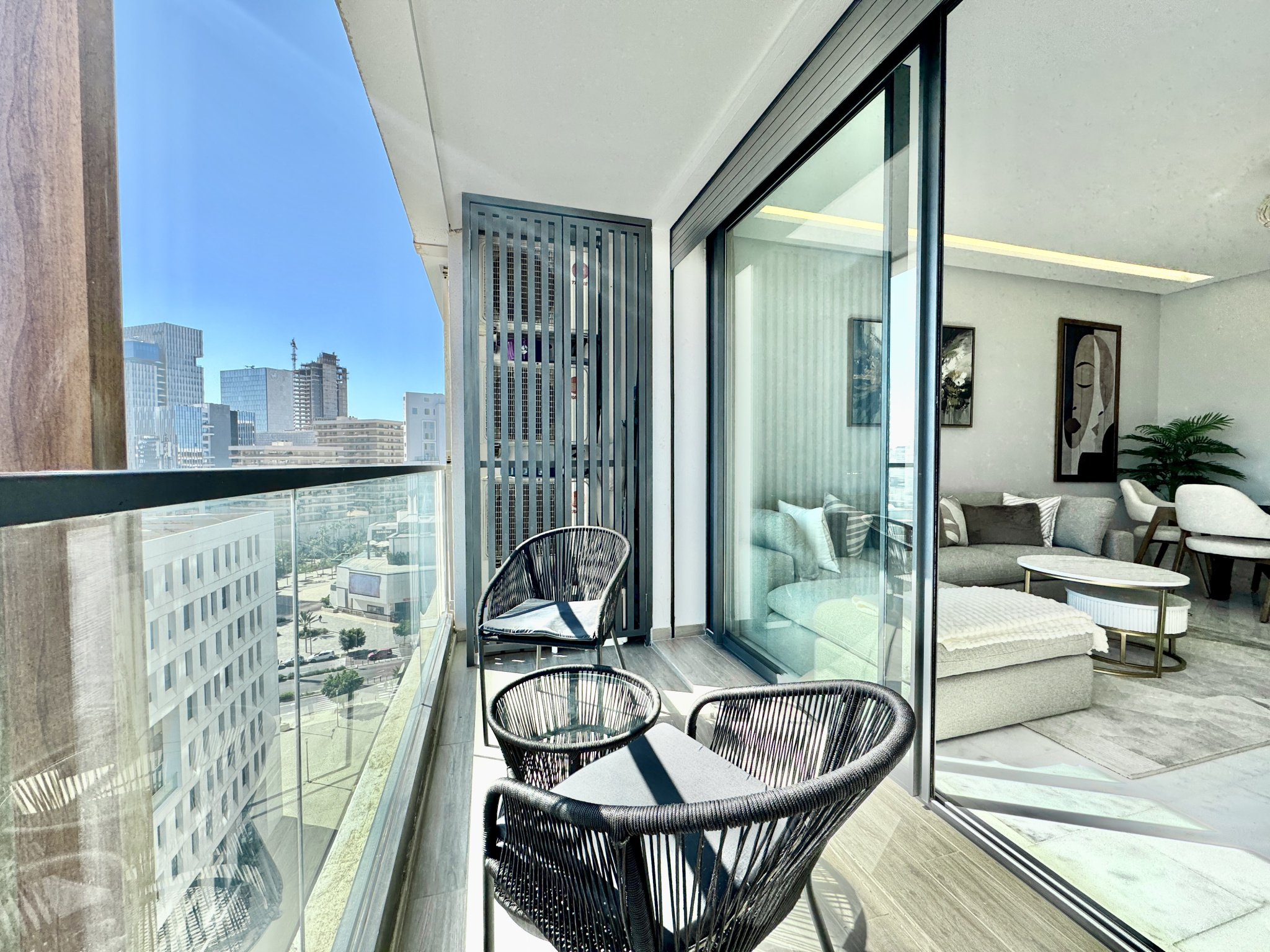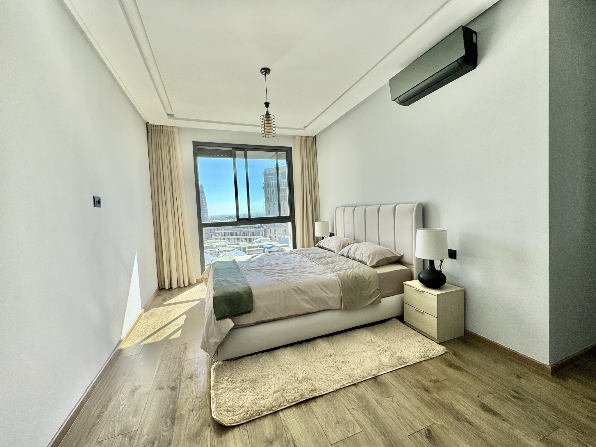 The Agency met à votre disposition un très bel appartement de 80 m² à la location, situé au 11ᵉ étage d’une résidence moderne et sécurisée au cœur de CFC, à proximité immédiate de l’Aeria Mall.