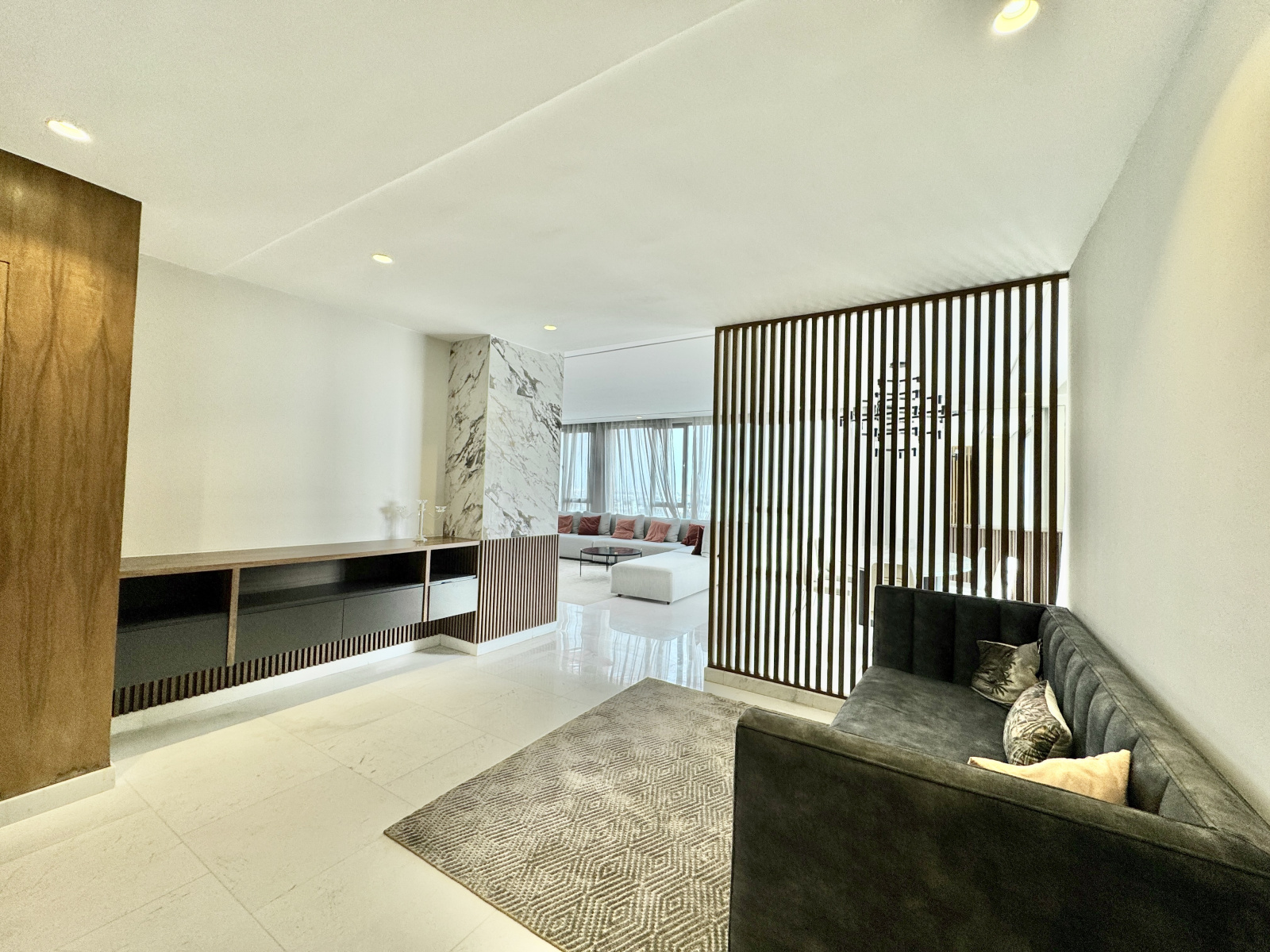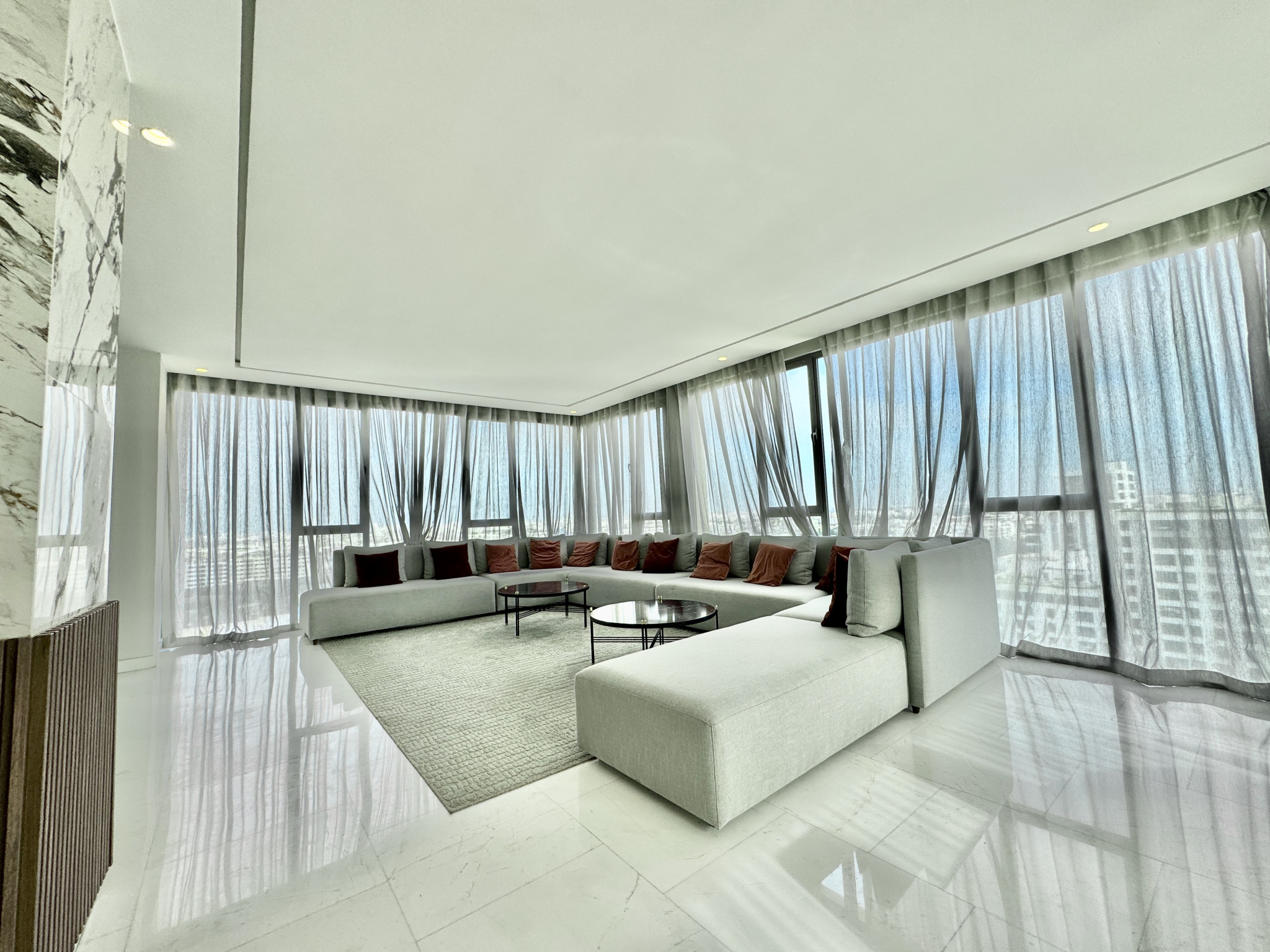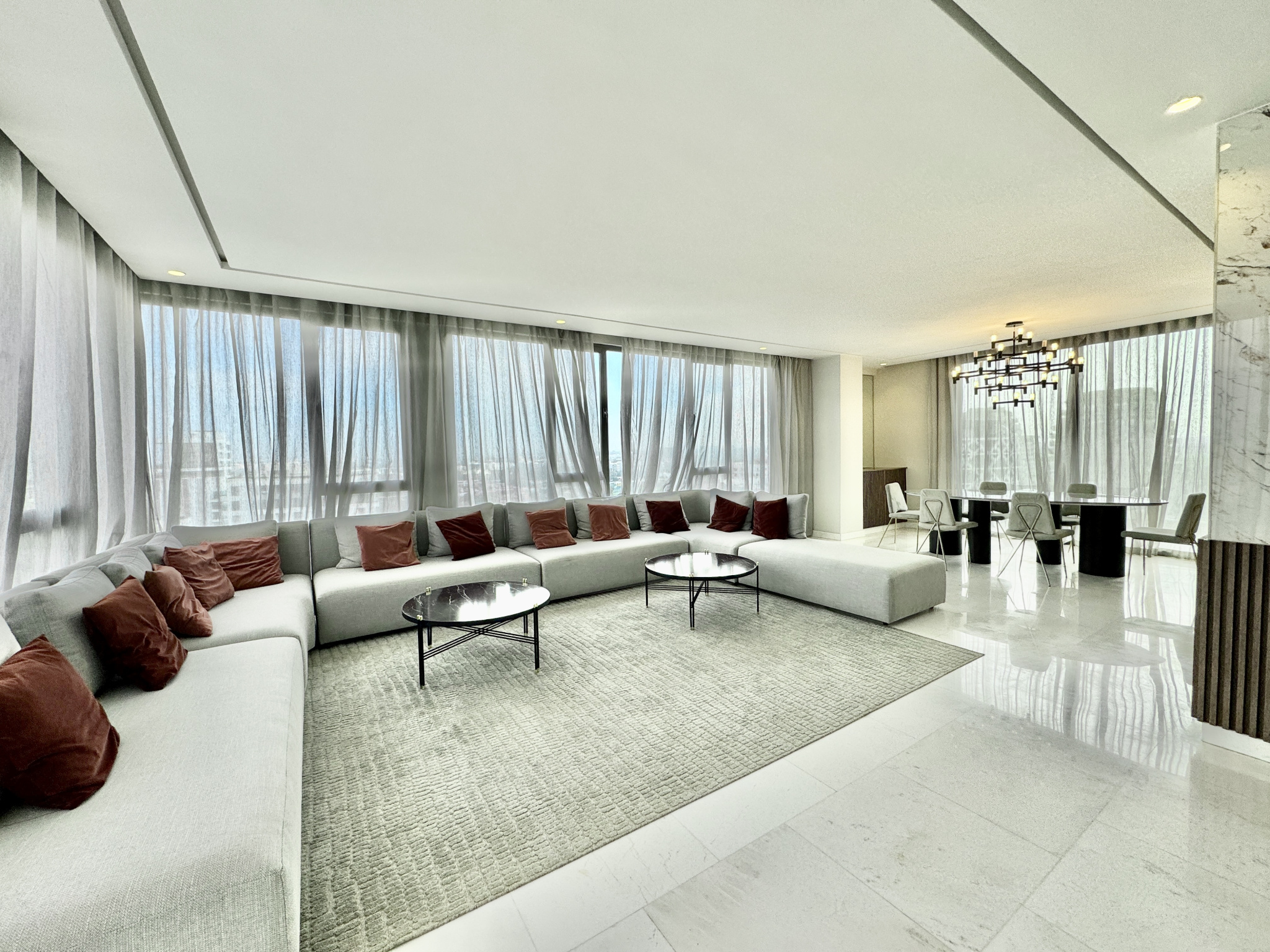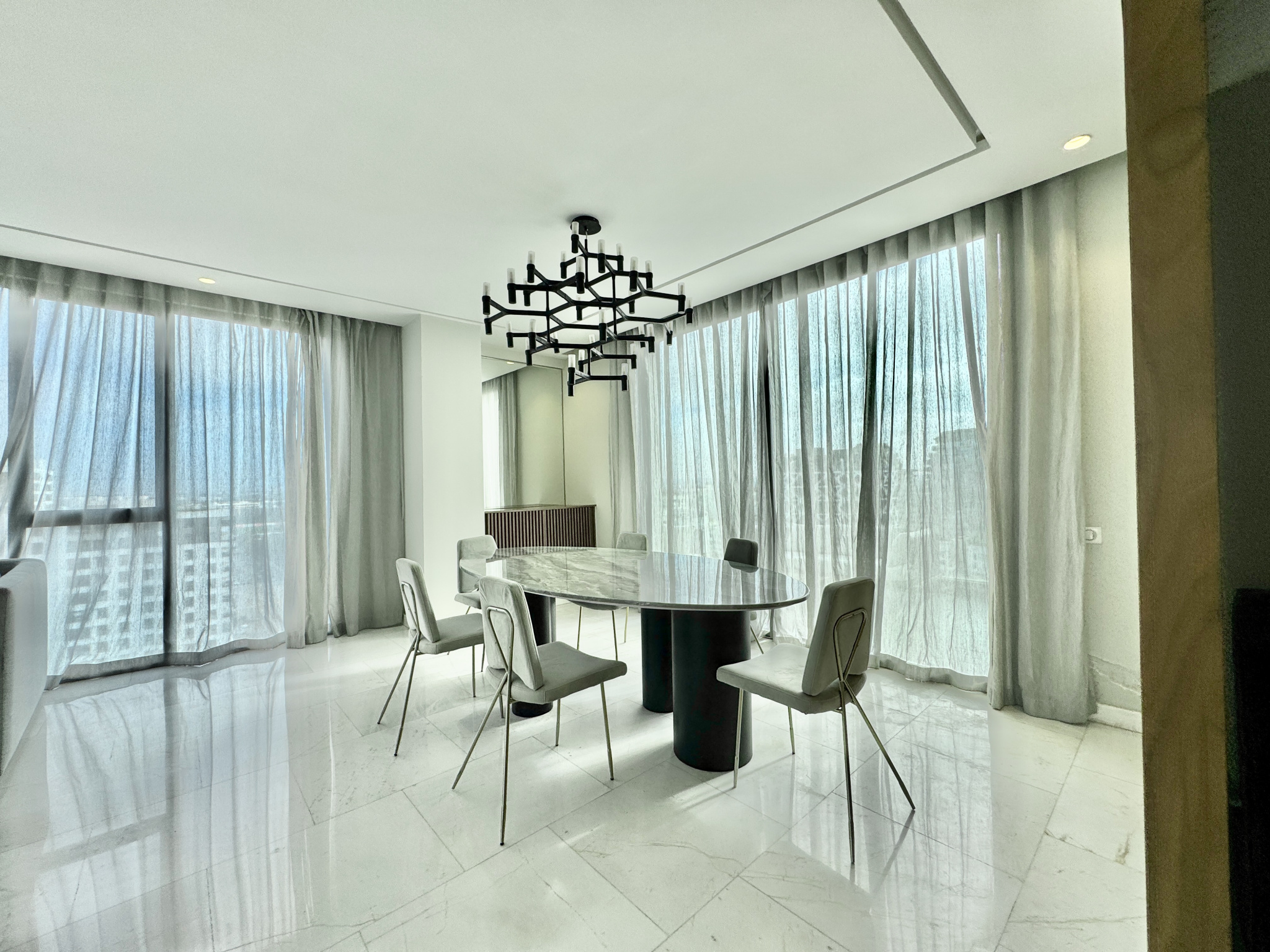 Les prestations sont de très haute qualité : climatisation centralisée réversible, parquet dans l’espace nuit, marbre au sol dans l’espace jour, triple façade, appartement rare sur le marché, résidence premium avec prestations complètes.