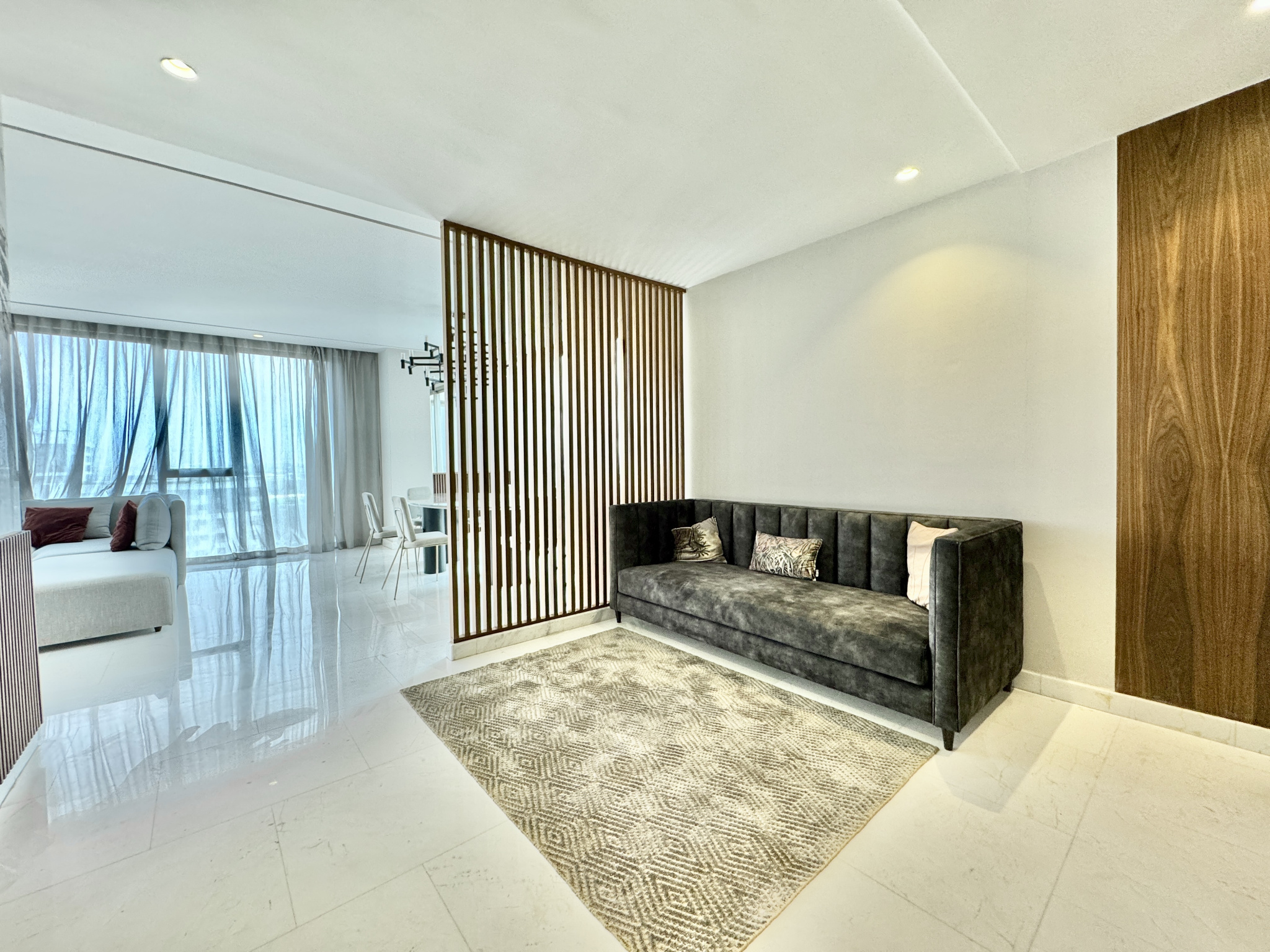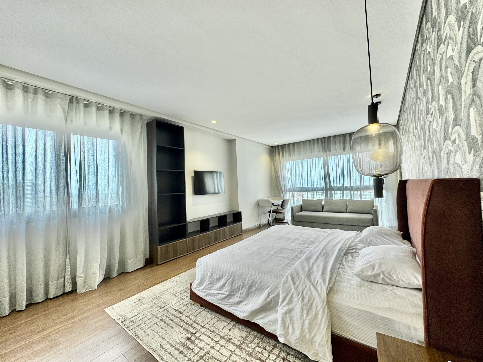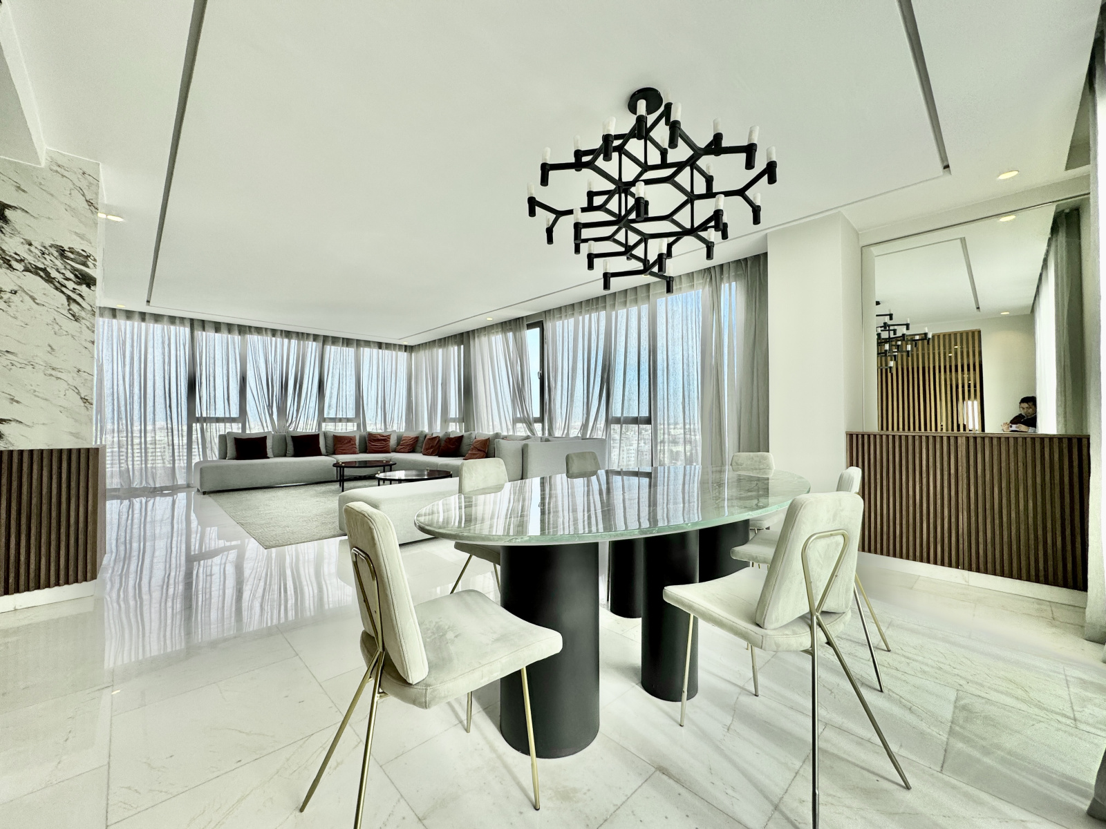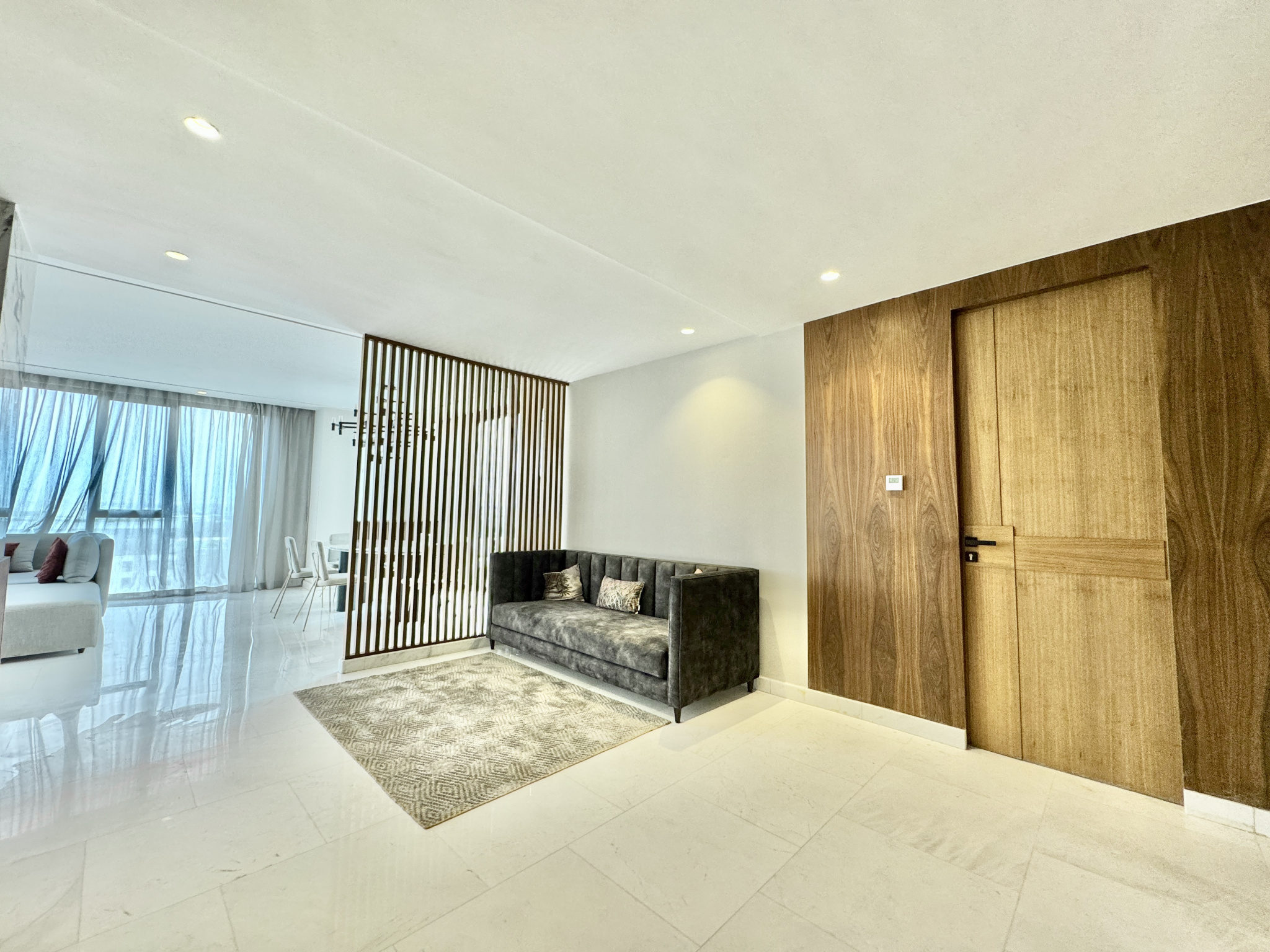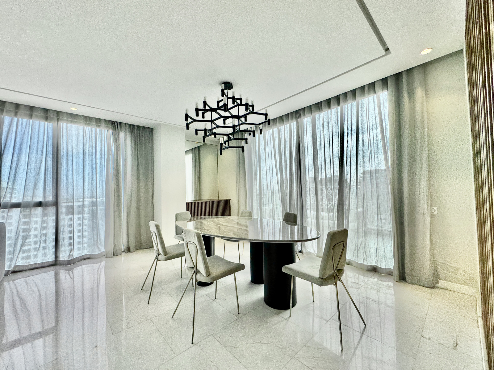 Les prestations sont de très haute qualité : climatisation centralisée réversible, parquet dans l’espace nuit, marbre au sol dans l’espace jour, triple façade, appartement rare sur le marché, résidence premium avec prestations complètes.