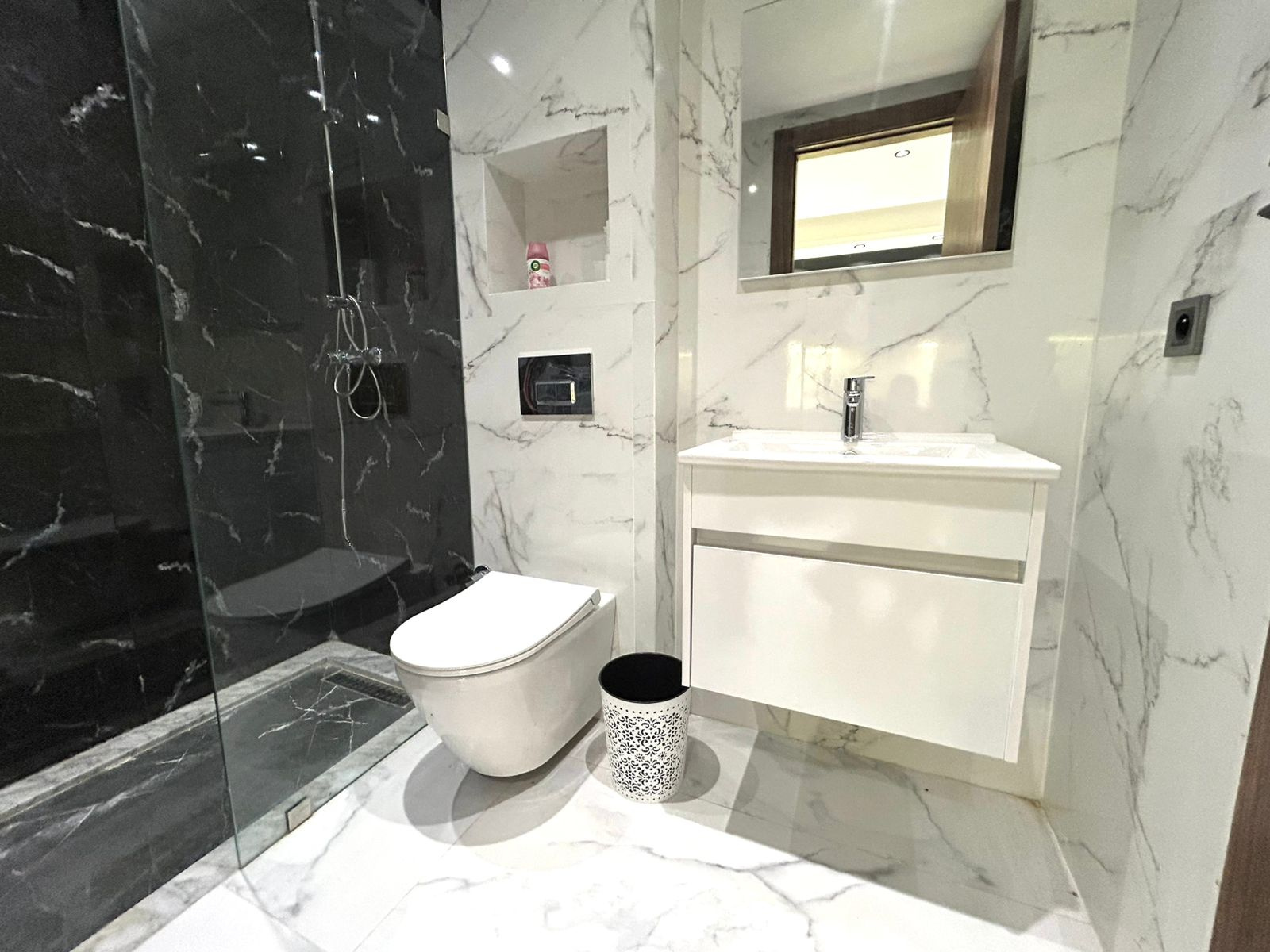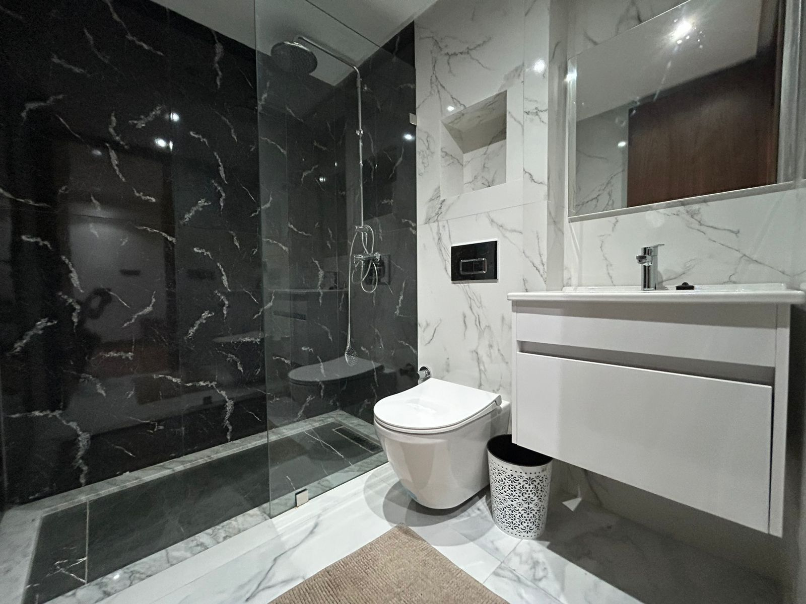 Les prestations sont de haut standing : marbre au sol en bas, parquet dans les escaliers et à l’étage, climatisation centralisée, nombreux rangements, mobilier et literie neufs, entièrement équipé.