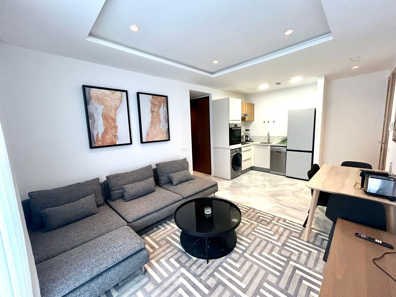 Marbre au sol dans le séjour, parquet dans la chambre, climatisation centralisée, sanitaires Jacob Delafon, robinetterie Hansgrohe.