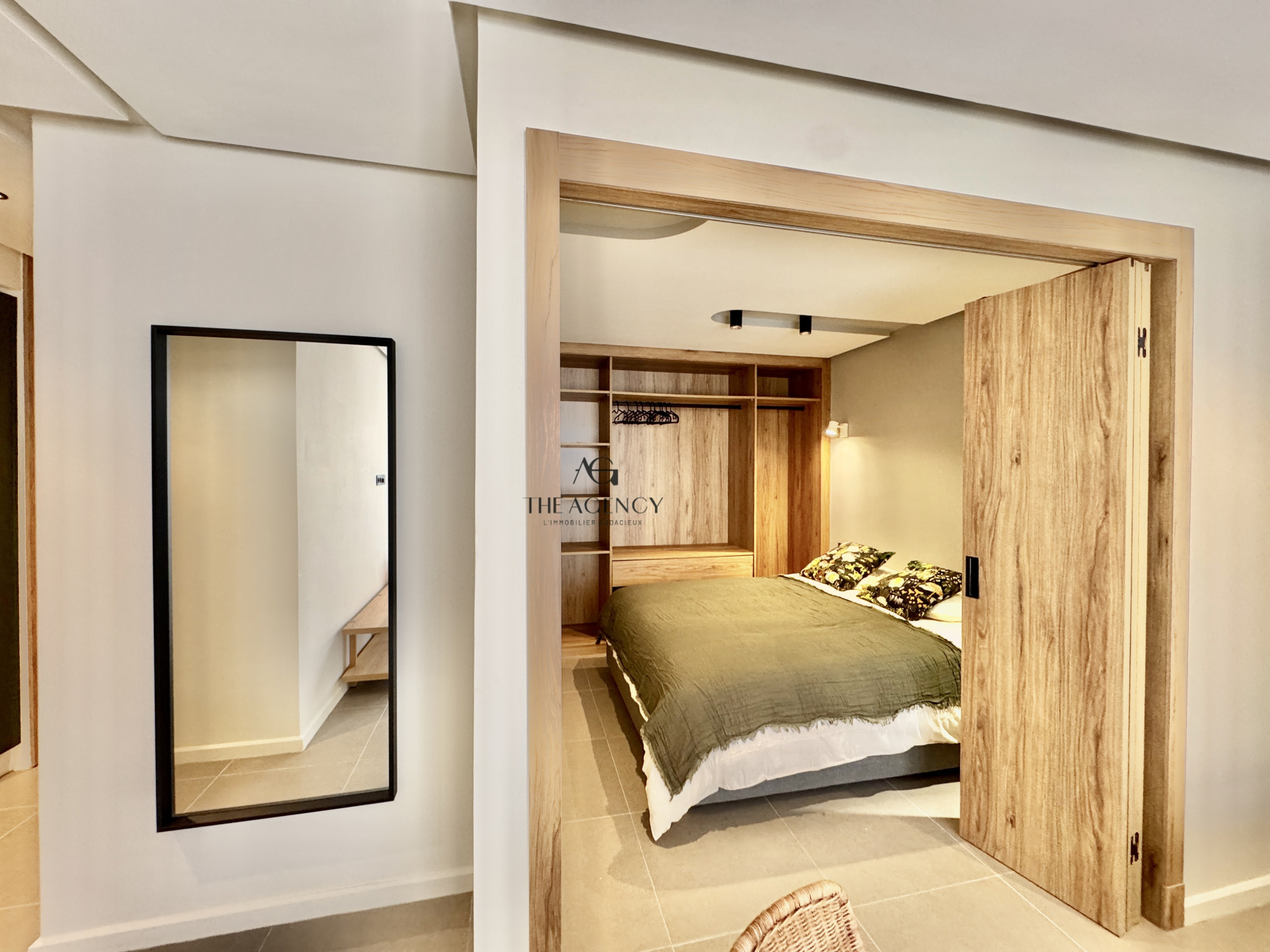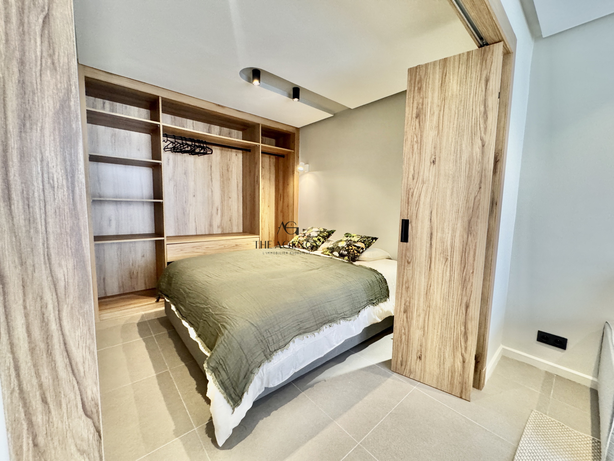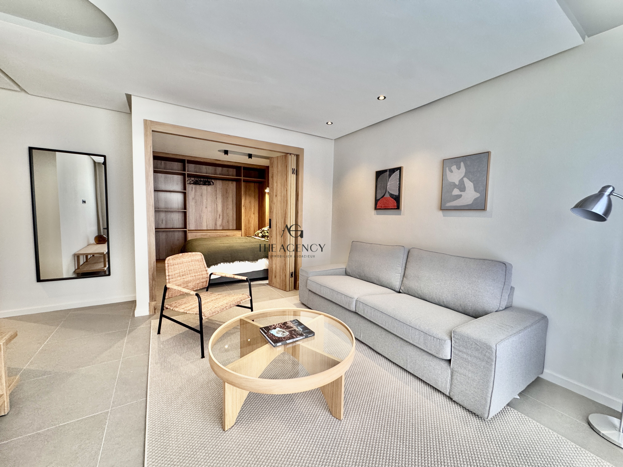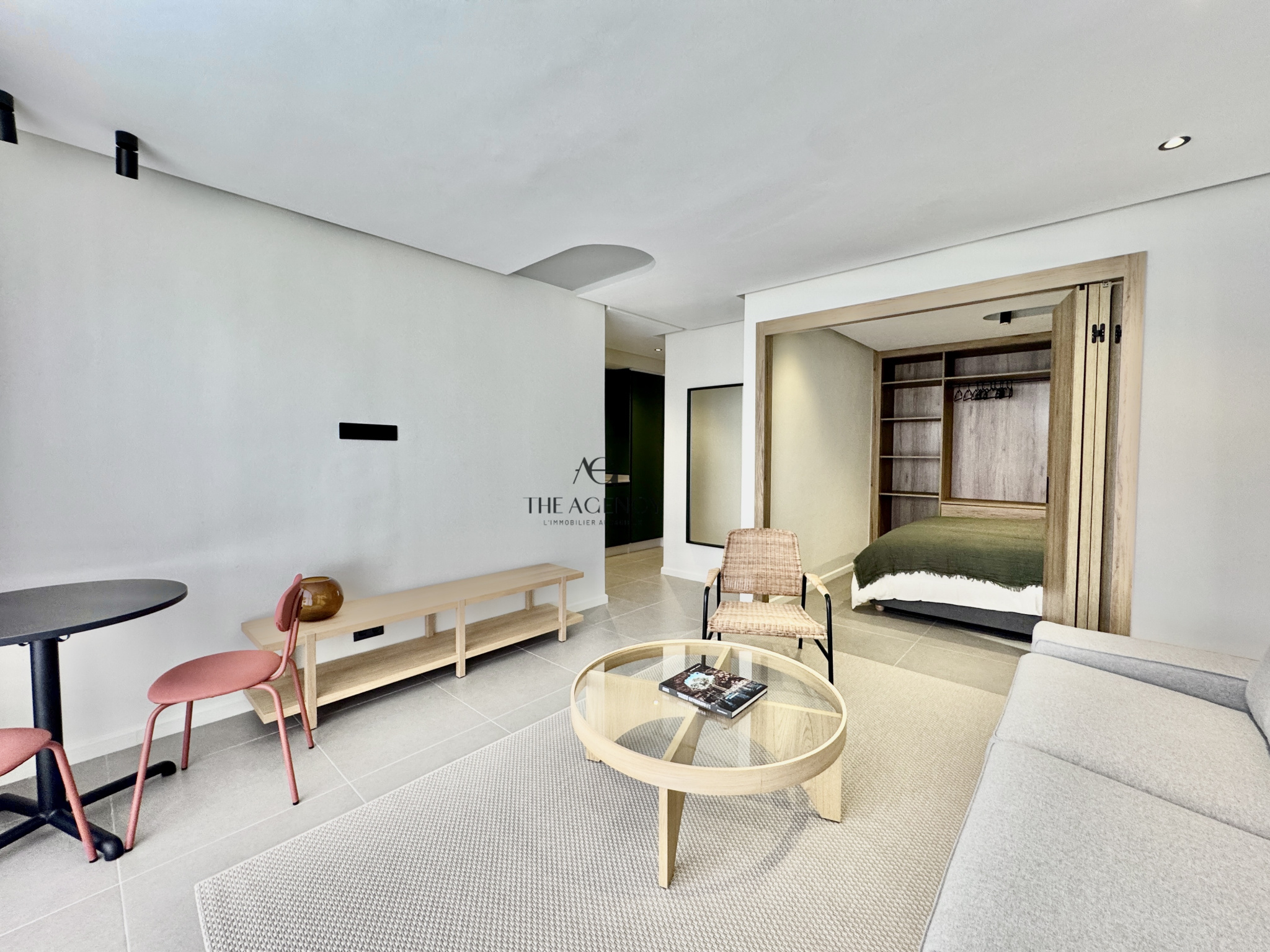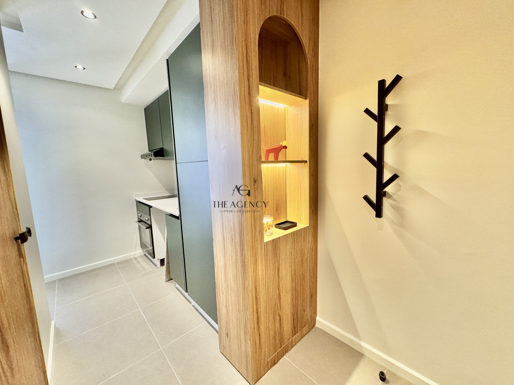 Racine Bd Ali Abderrazik – Studio meublé à la location – 1 chambre – 40 m² – Style appart-hôtel – Orientation sud-est – 1 place de parking – Résidence neuve et mobilier neuf.