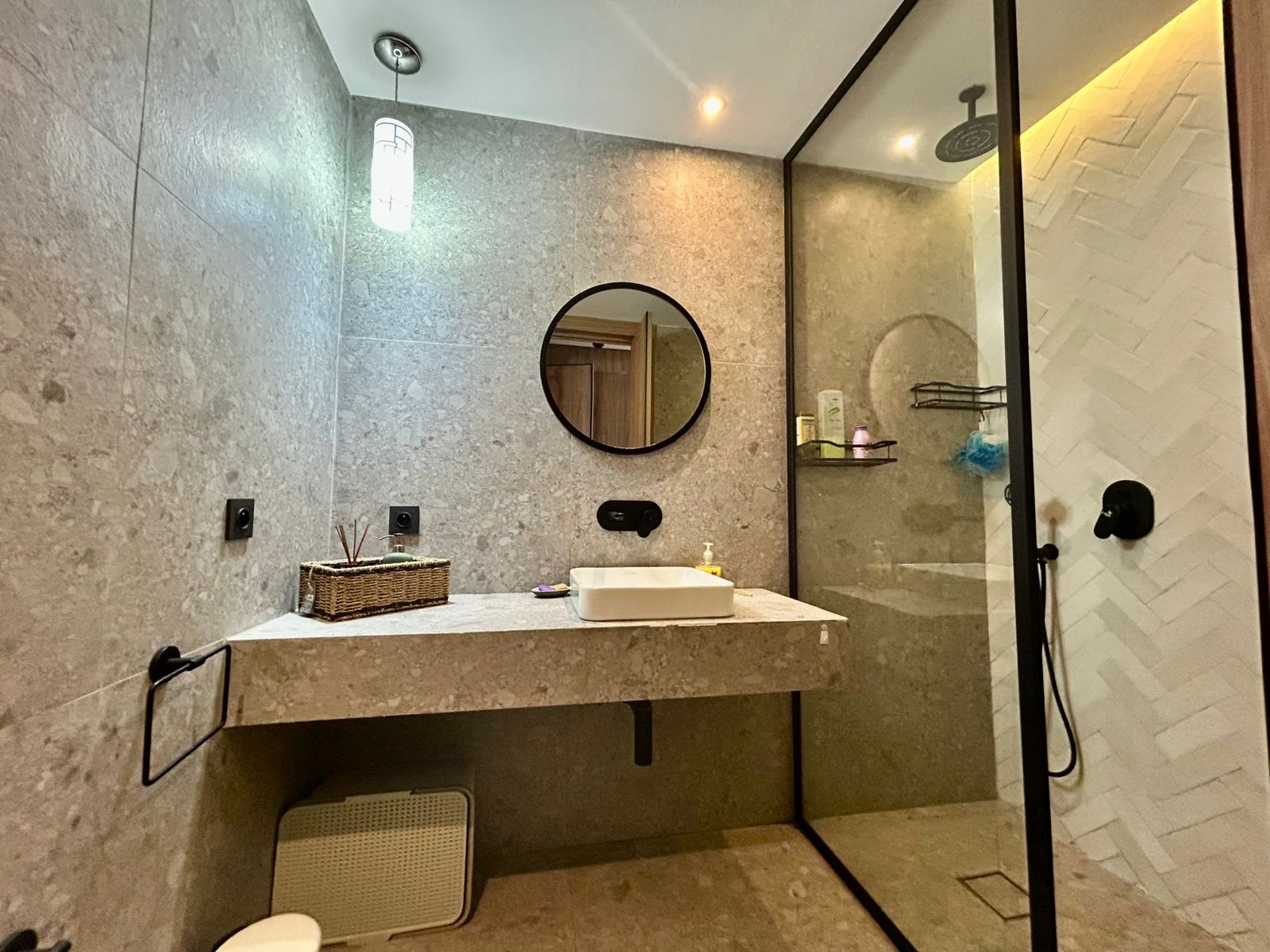 Les prestations sont de qualité : appartement traversant, carrelage gris cérame au sol, nombreux rangements, climatisation réversible, finitions modernes et emplacement recherché à Gauthier.