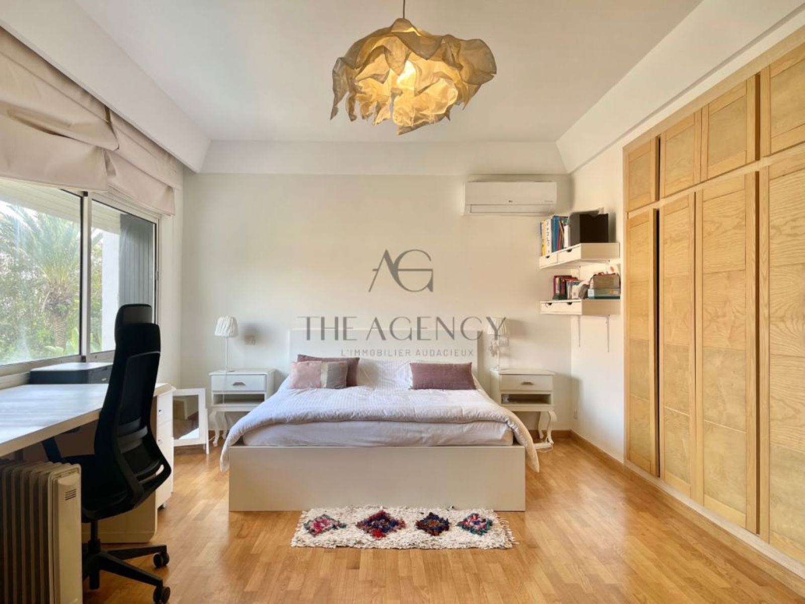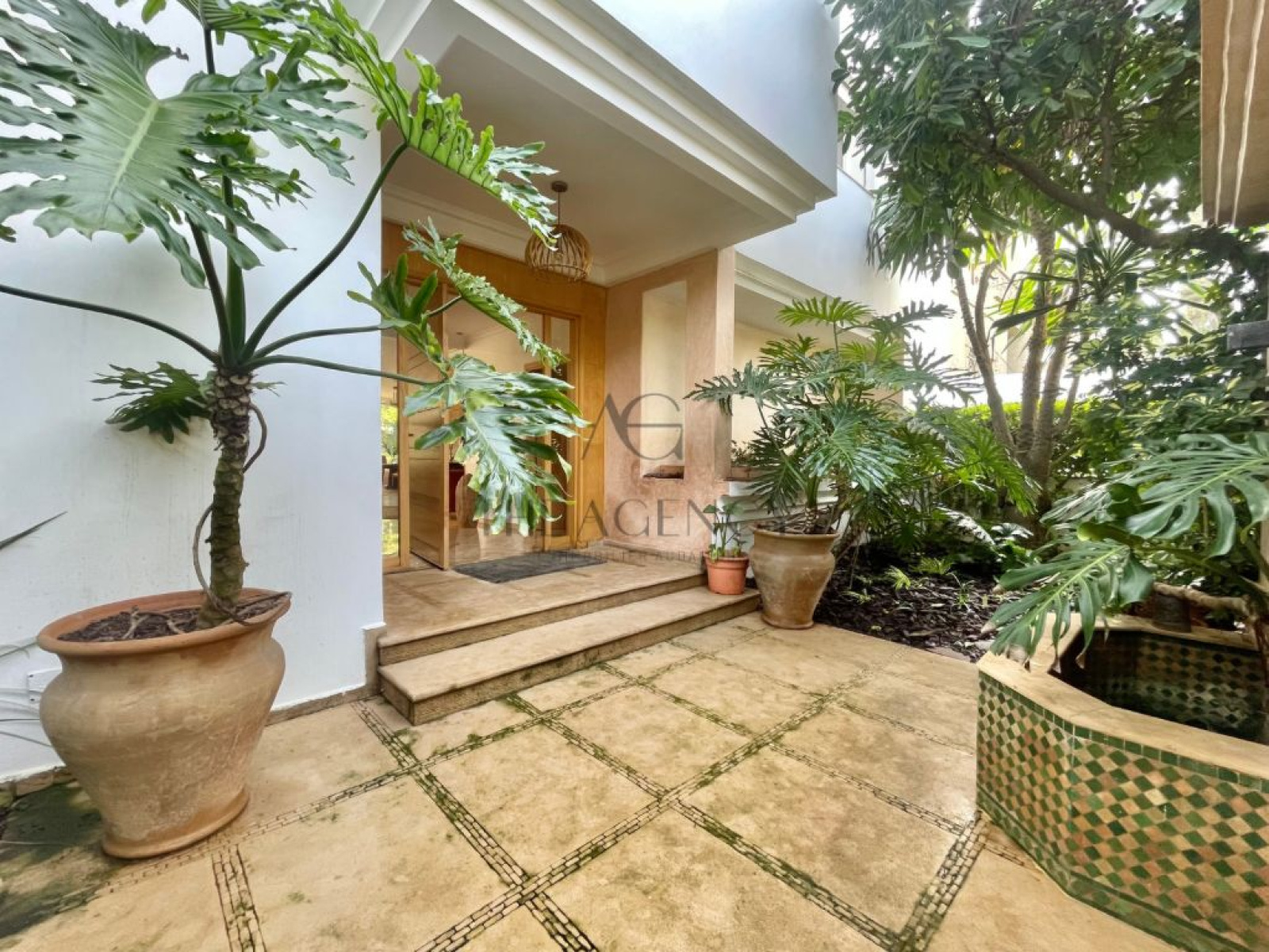 Anfa Manar – Sublime villa à la location de 900 m² de terrain et de 600 m² construits sur 3 niveaux – 4 chambres – 4 salles de bains – Très belle vue mer depuis le rooftop – Exposition : Sud-Ouest sur piscine et jardin.
