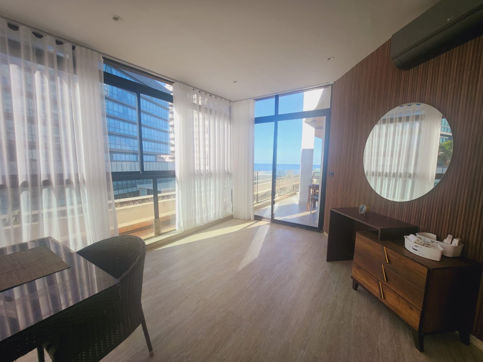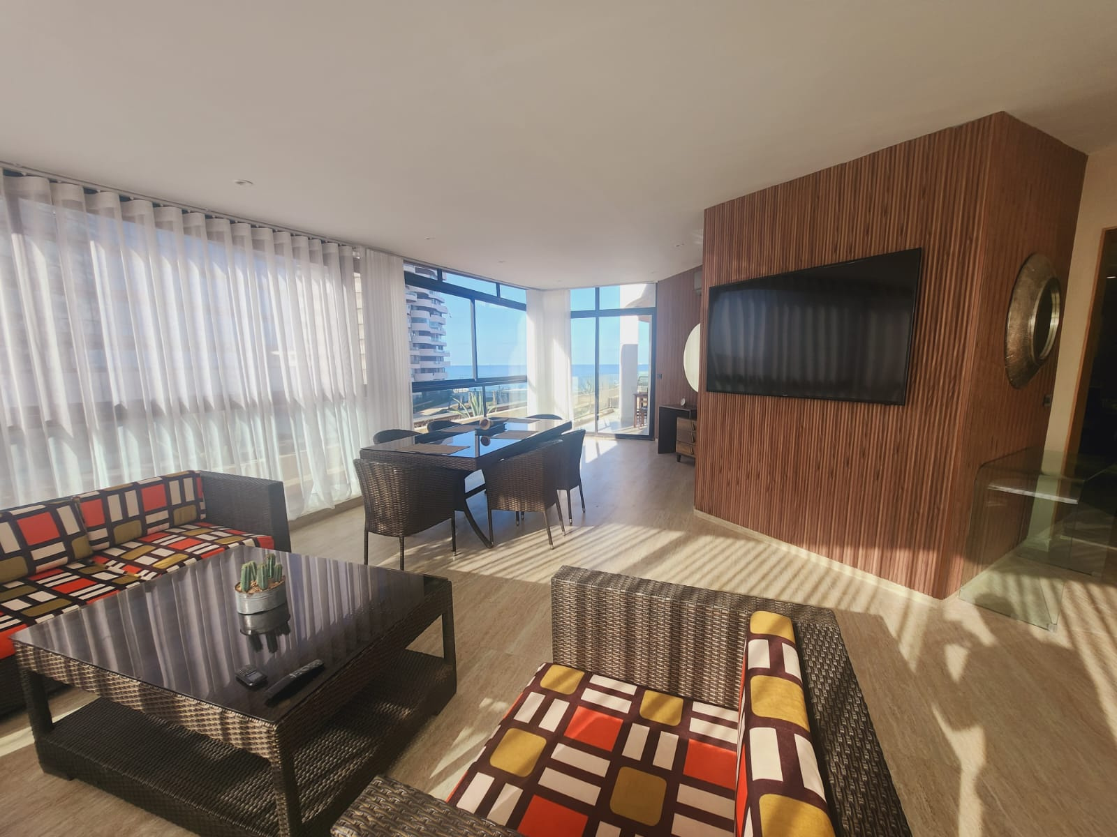 - Un grand salon avec vue mer donnant sur une terrasse