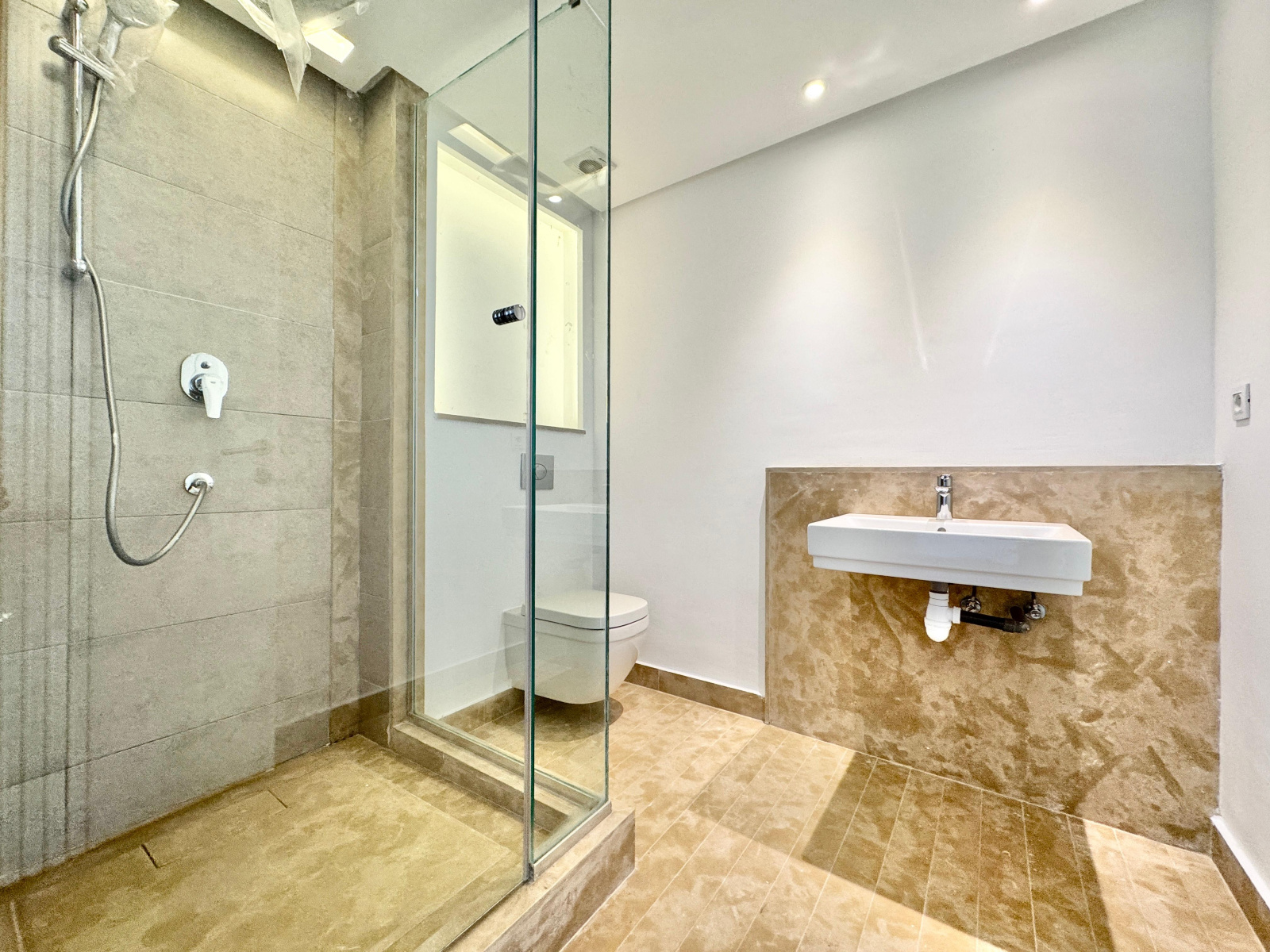 Les prestations sont de haut standing :Marbre au sol dans le séjour et parquet dans les chambres, climatisation centralisée réversible, double vitrage, etc….