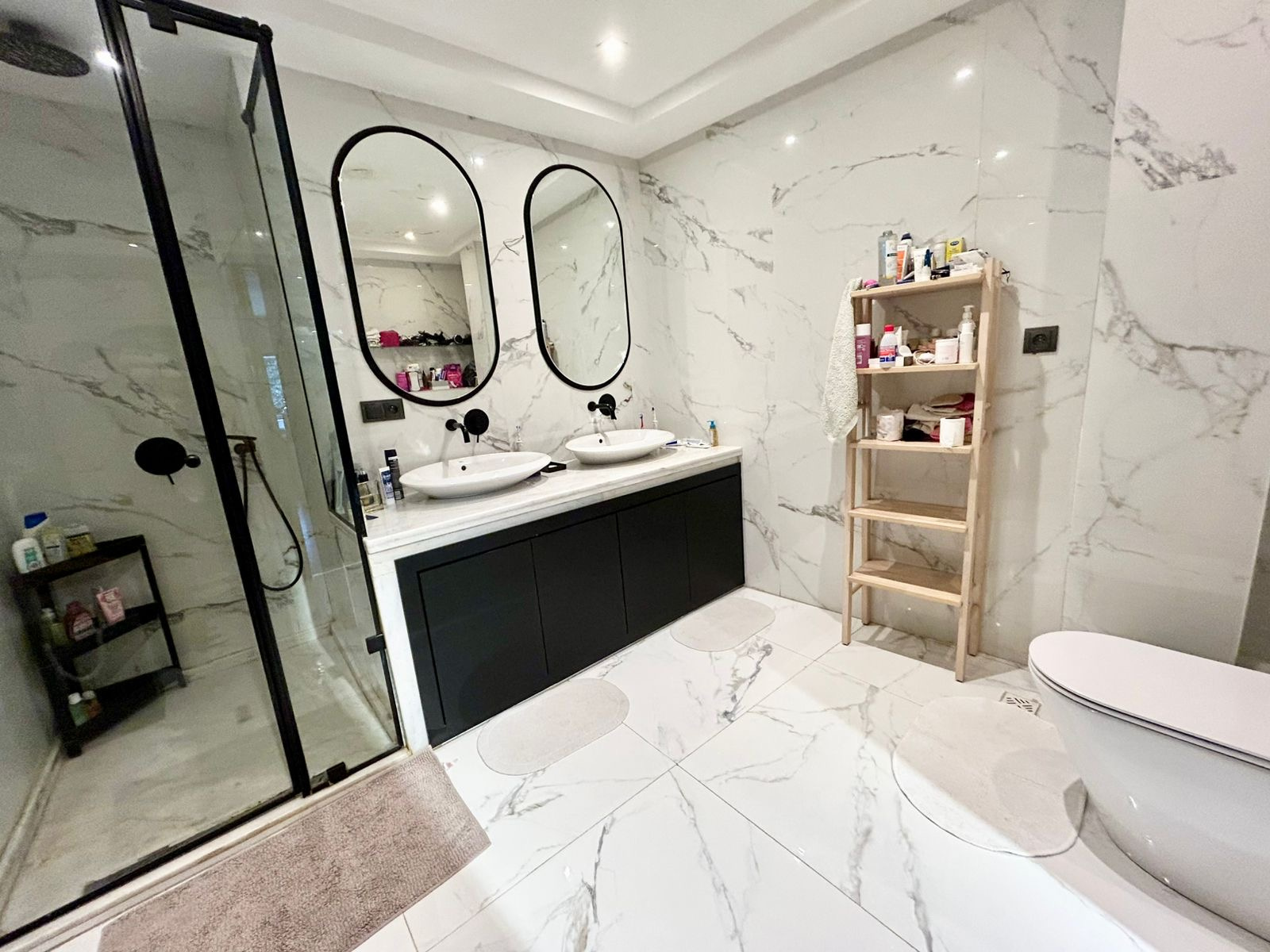 L’appartement est domotisé, la climatisation est réversible, marbre au sol dans le séjour, parquet dans les chambres, sanitaires et robinetterie design…