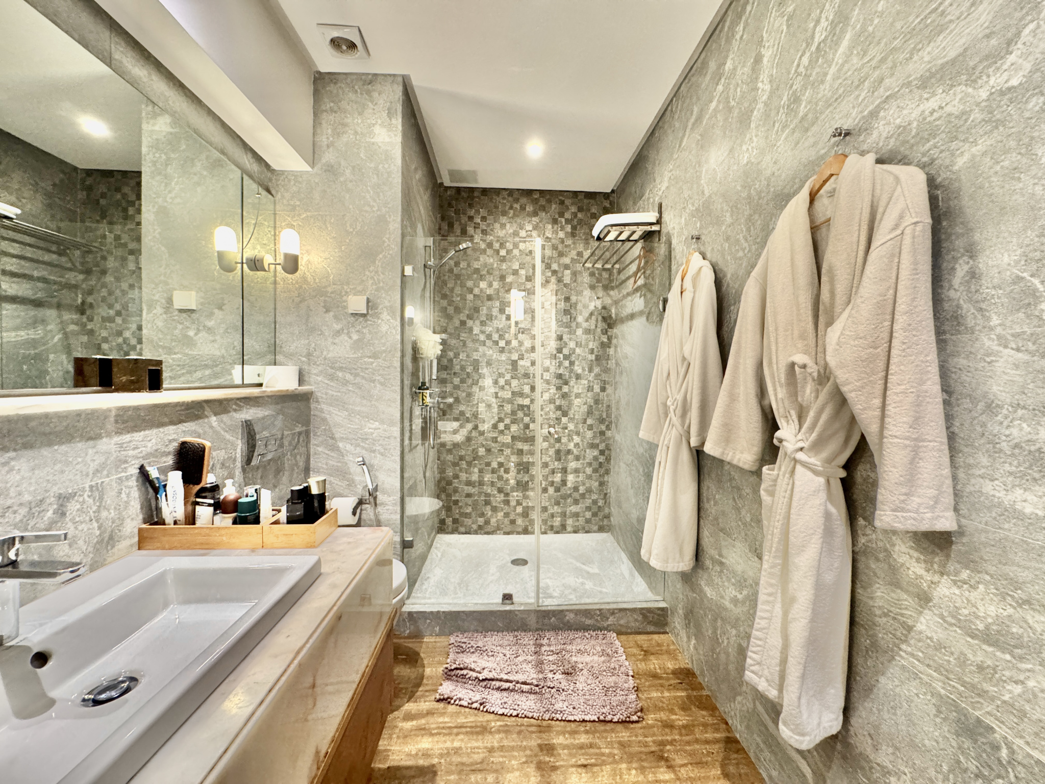 - Deux salles de bain et une salle d’eau invités