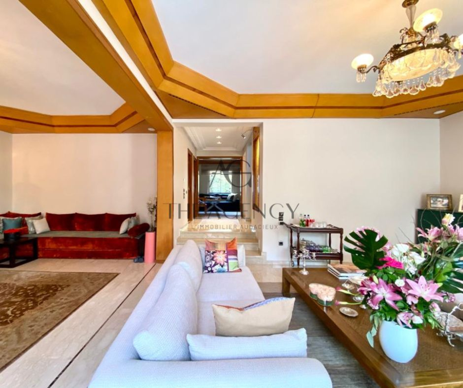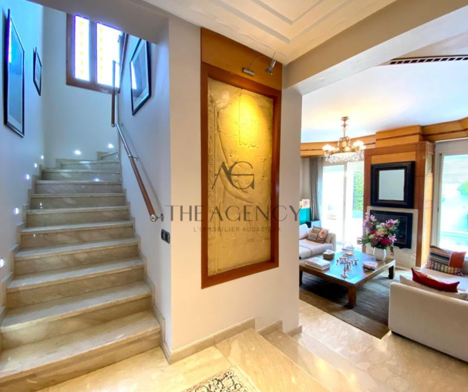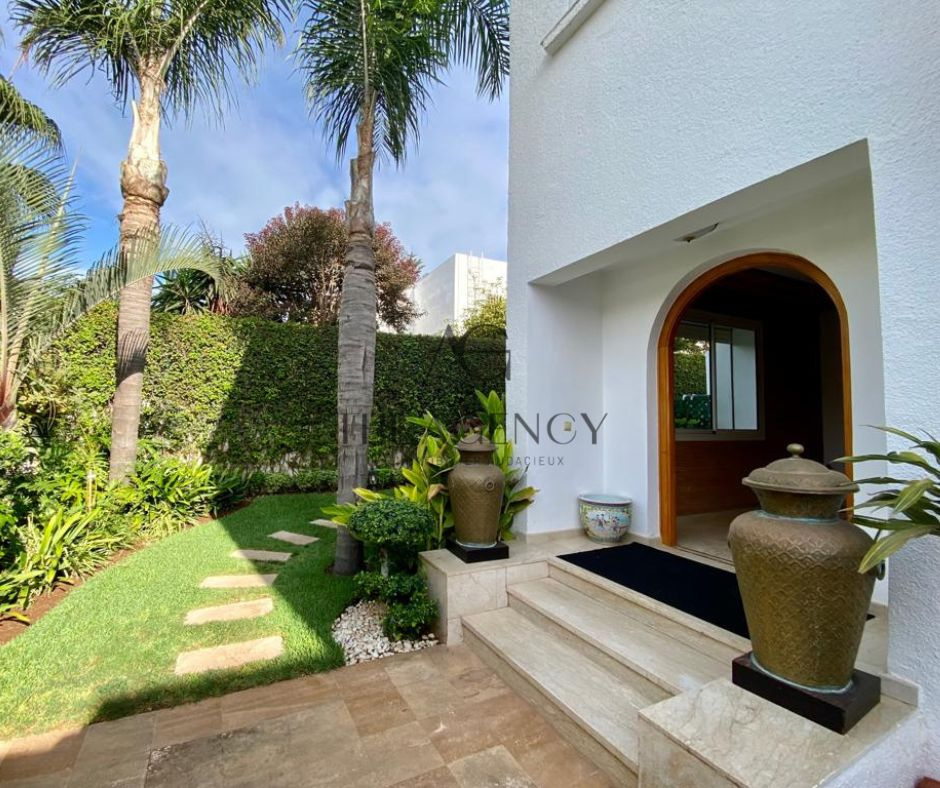 The Agency met à votre disposition une magnifique villa réalisée par un architecte de renom située dans une résidence fermée et sécurisée à Ain Diab, route d'Azemmour.