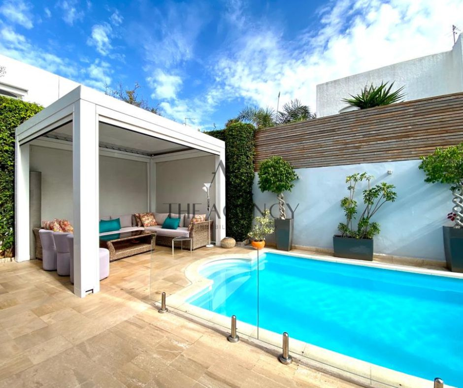 Ain Diab - Vente d'une très belle villa de 350 m² construites sur 2 niveaux - Terrain : 330 m² - 4 chambres - 3 salles de bains - Jardin avec piscine - Exposition : Sud Est-Ouest.
