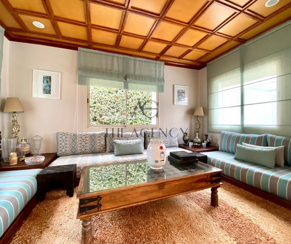 Cette superbe villa vous offre des prestations de haut standing : marbre au sol, boiserie de qualité, revêtement bois aux murs et plafonds, système de sonorisation dans les plafonds, climatisation centralisée, cheminée à foyer fermé.