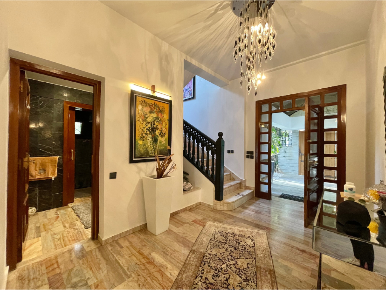 - Un hall d’entrée avec salle d’eau invités