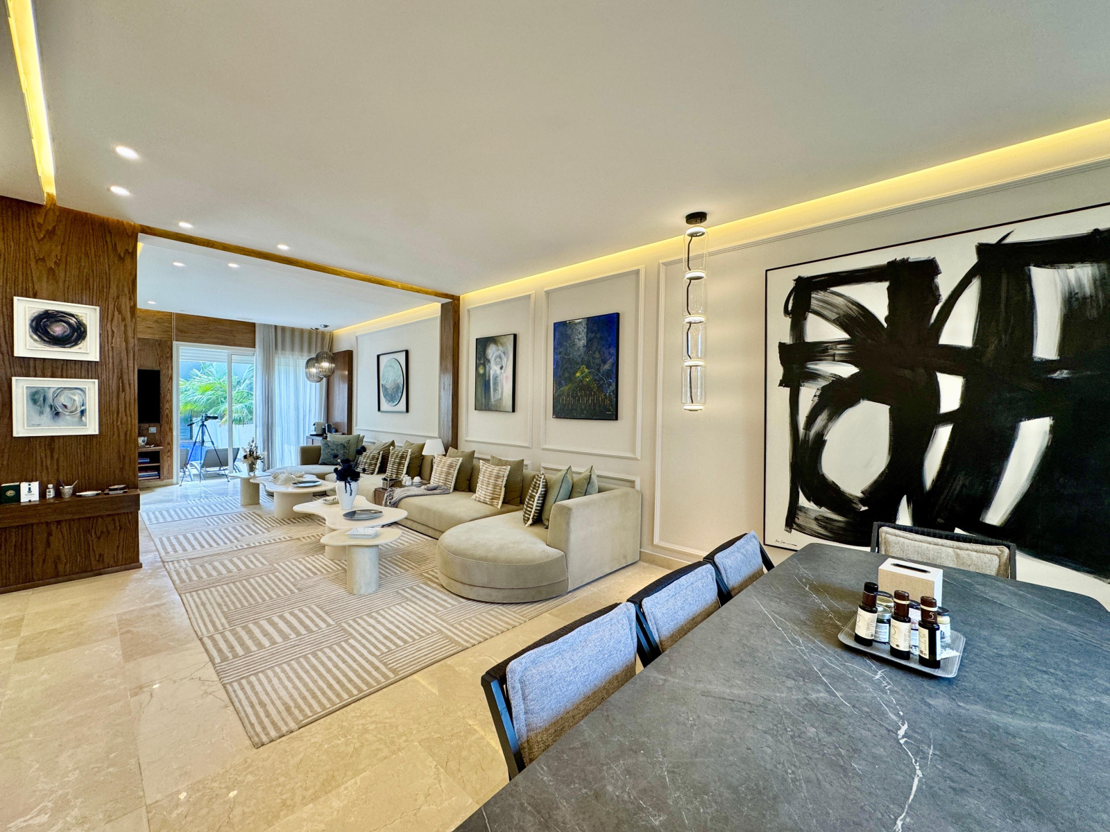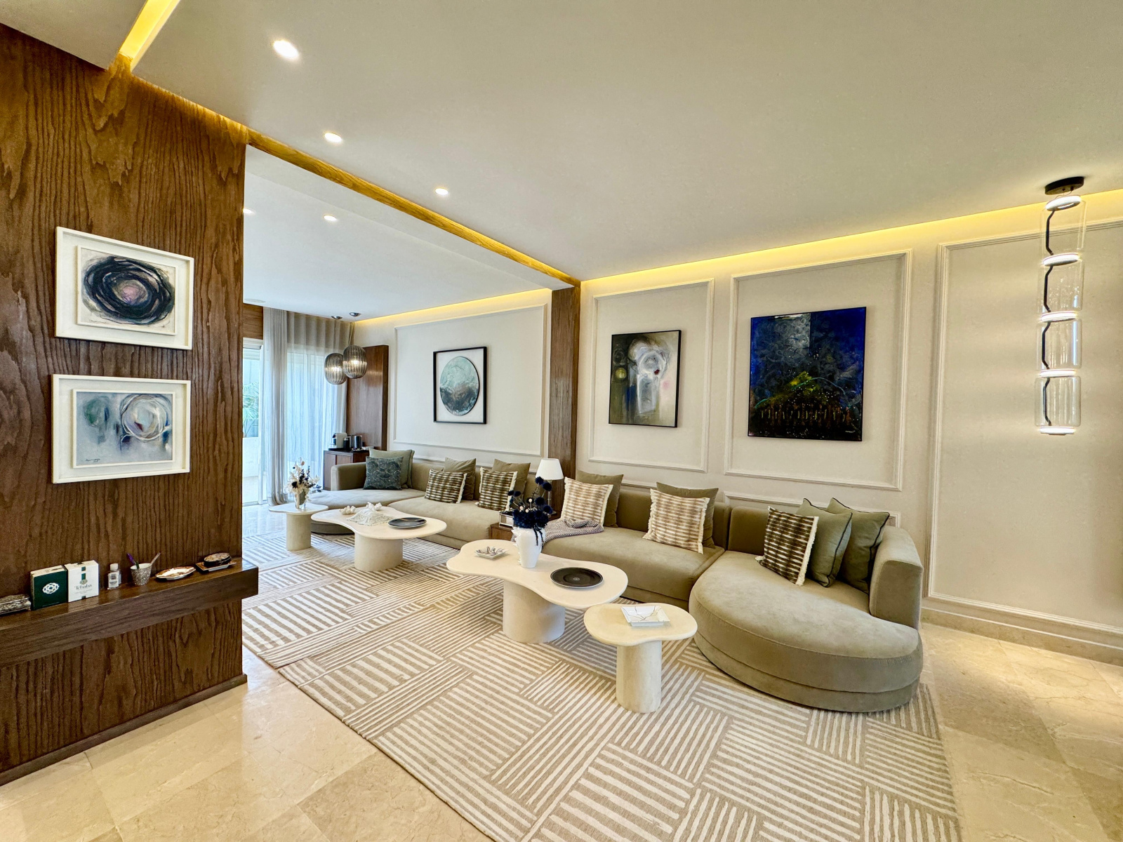 Les prestations sont de haut standing : La villa est moderne et bénéficie d’une belle luminosité, habillage mural en noyer et panneaux en relief 3D, moulures, bibliothèque avec éclairgae LED, marbre au sol, climatisation centralisée gainable. Pour plus d'informations, n'hésitez pas à nous contacter, nous serons ravis de vous accompagner et de vous offrir le meilleur de notre service.