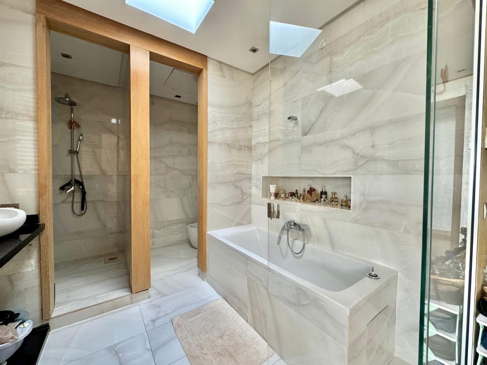 ▪️Une grande suite principale avec salle de bains avec douche et baignoire, dressing et accès sur une grande terrasse communiquante