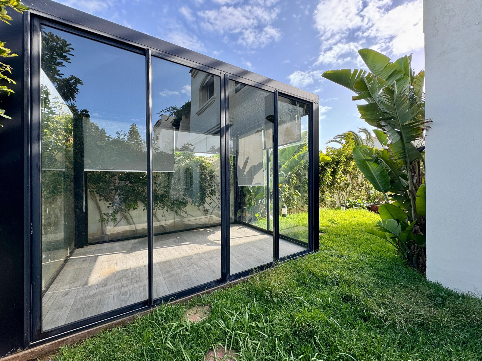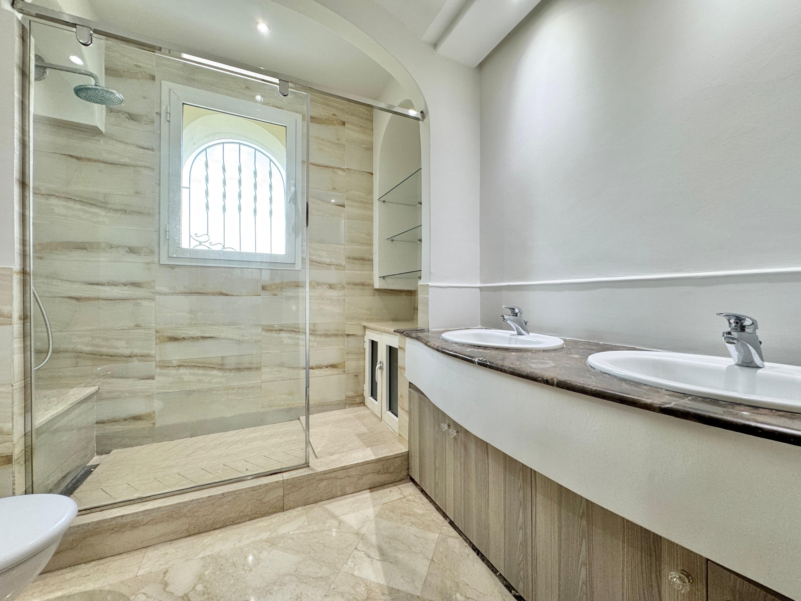 Marbre au sol dans les séjours et parquet dans les chambres, chauffage central au gaz, climatisation par split, chauffe-eau solaire, véranda extérieure bioclimatique, etc…