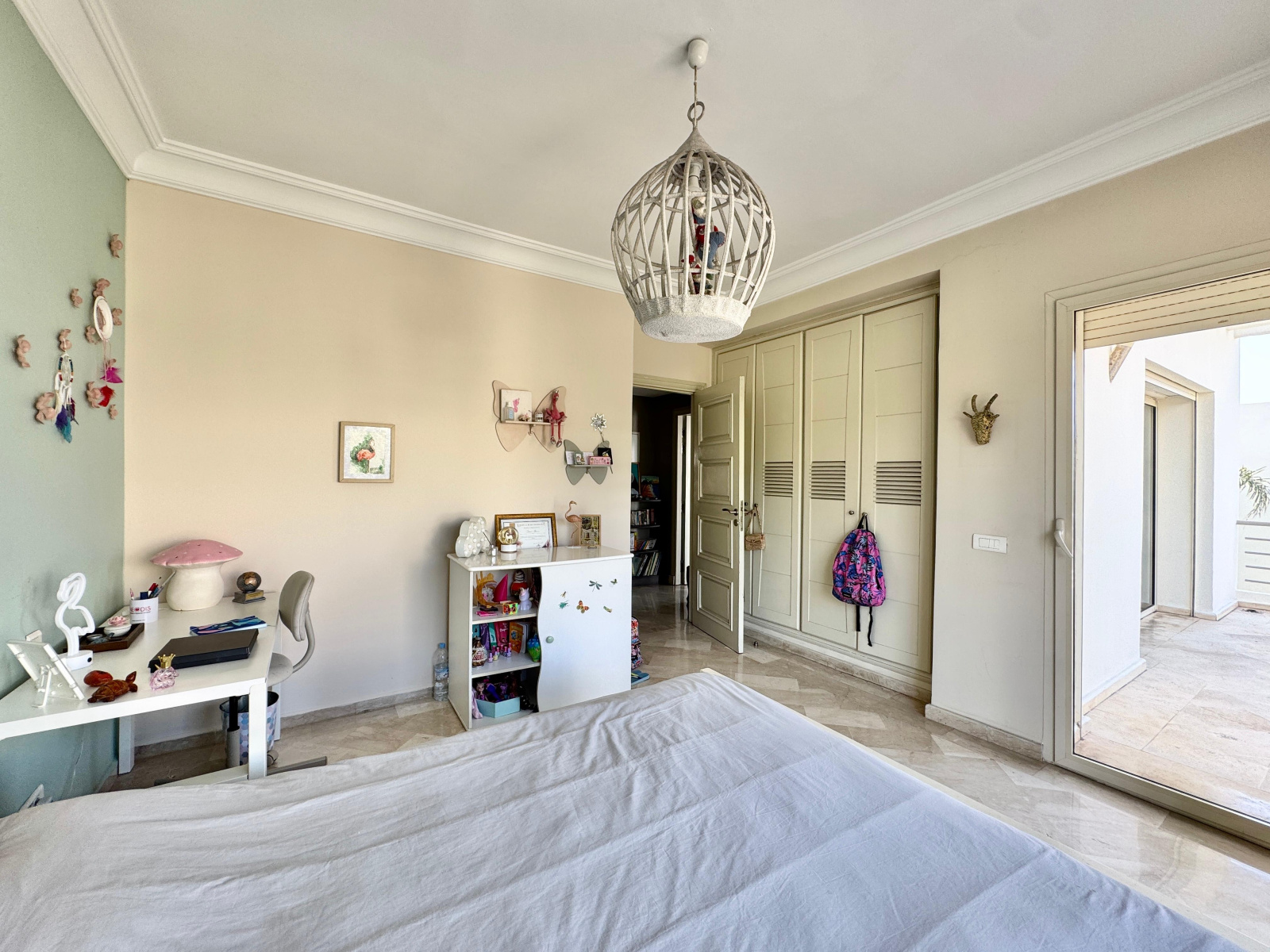- Deux chambres enfants avec terrasse et salle de bains commune avec baignoire