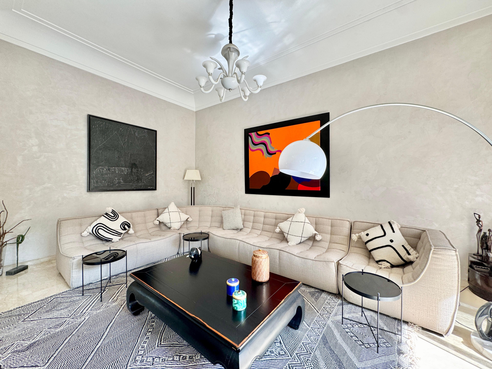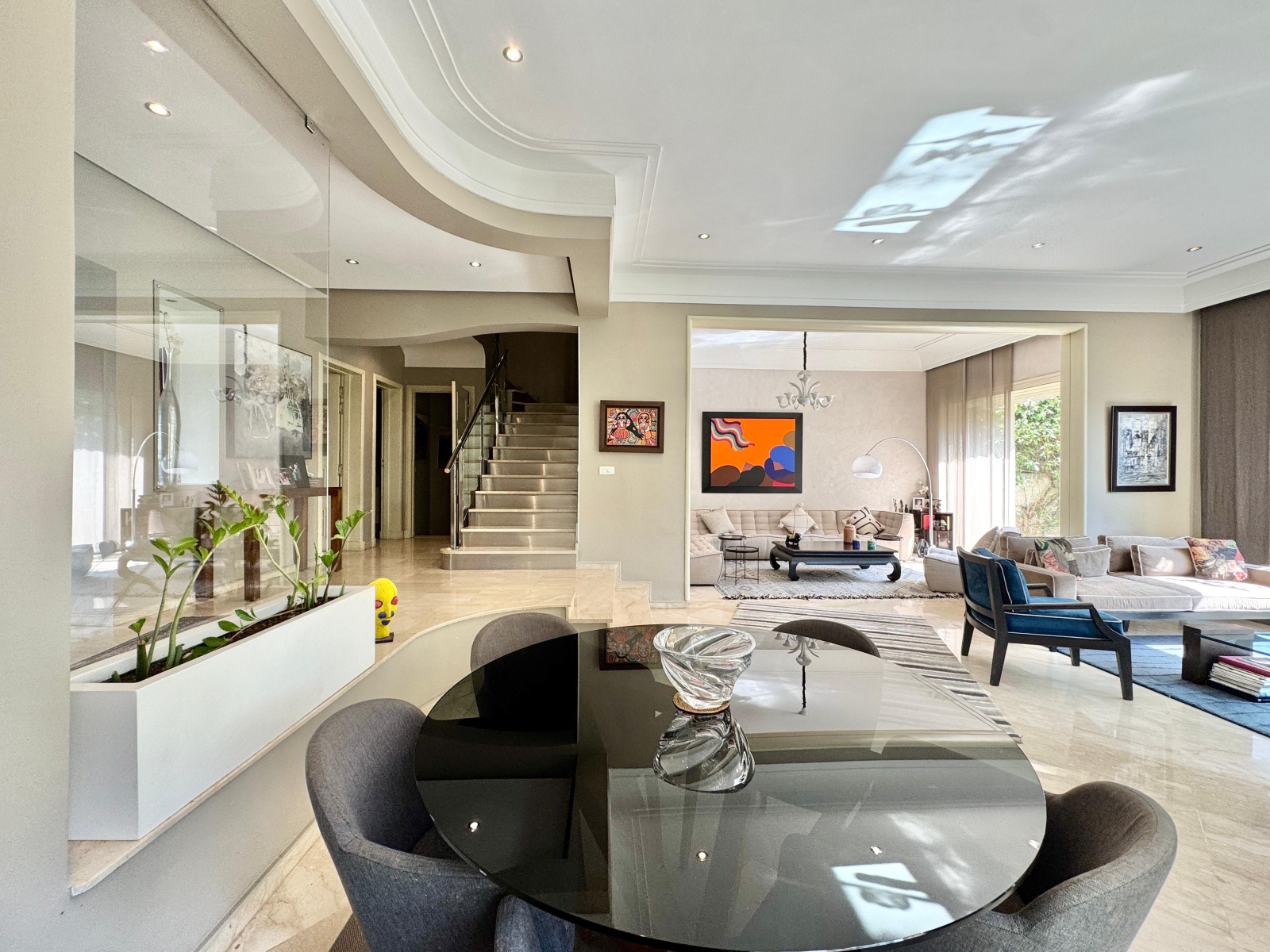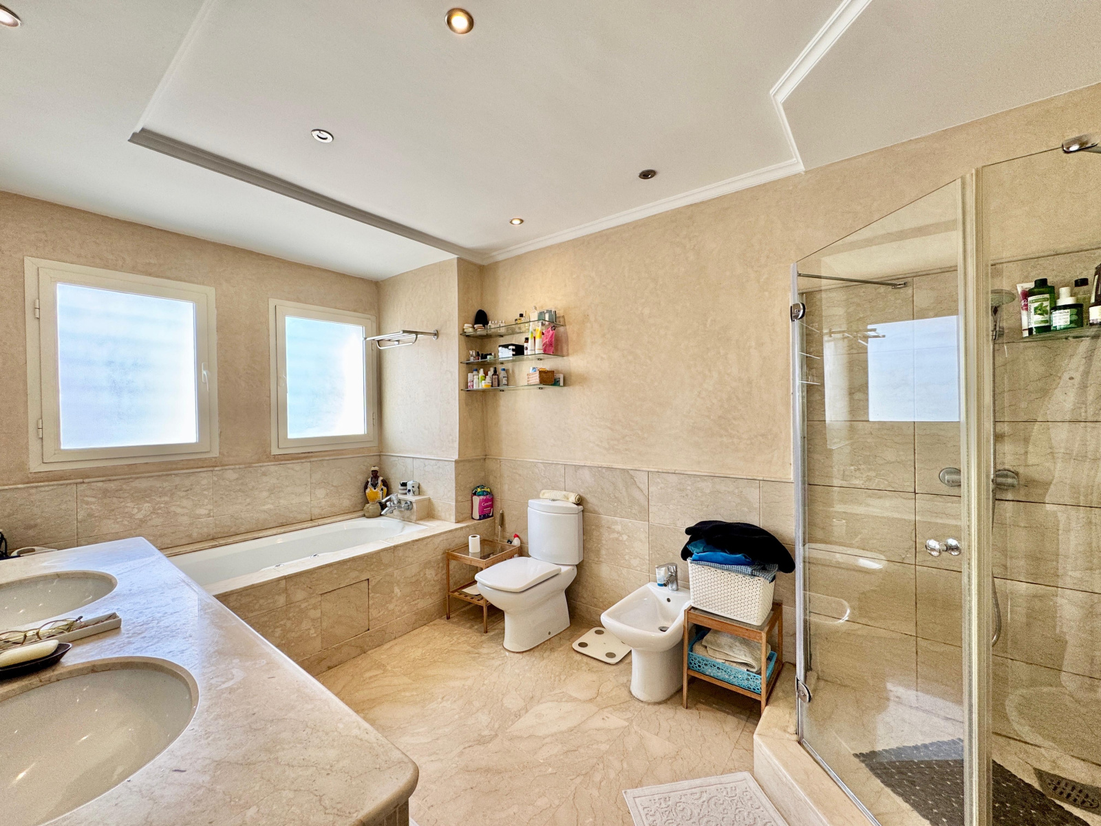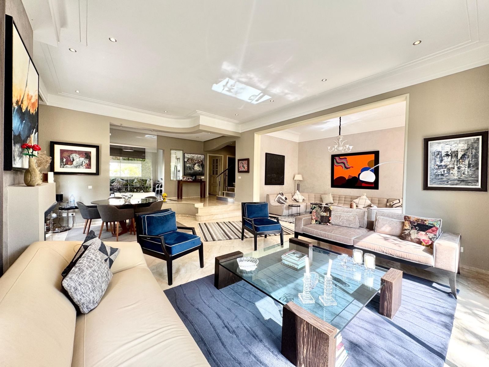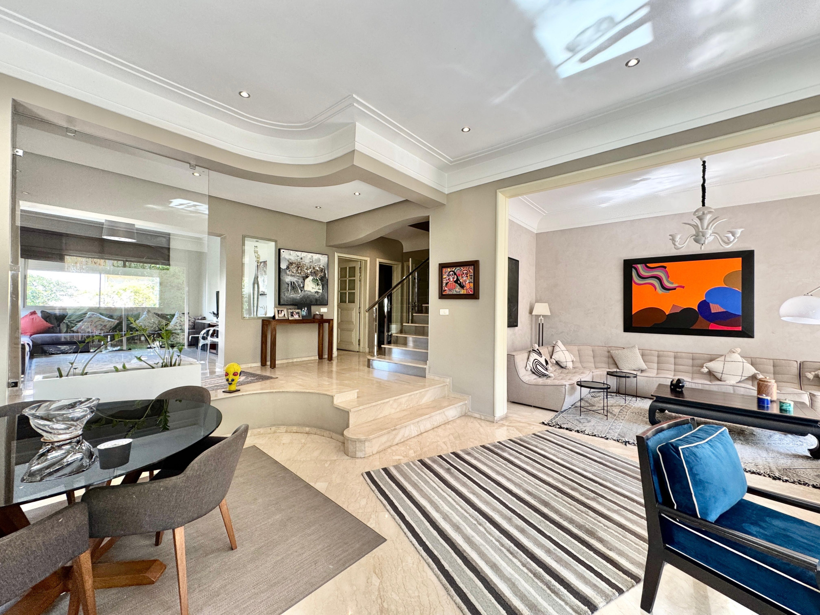 Chauffage centrale au gaz, marbre au sol dans les séjours, parquet au sol et climatisation par split dans la suite parentale et en rooftop, etc..