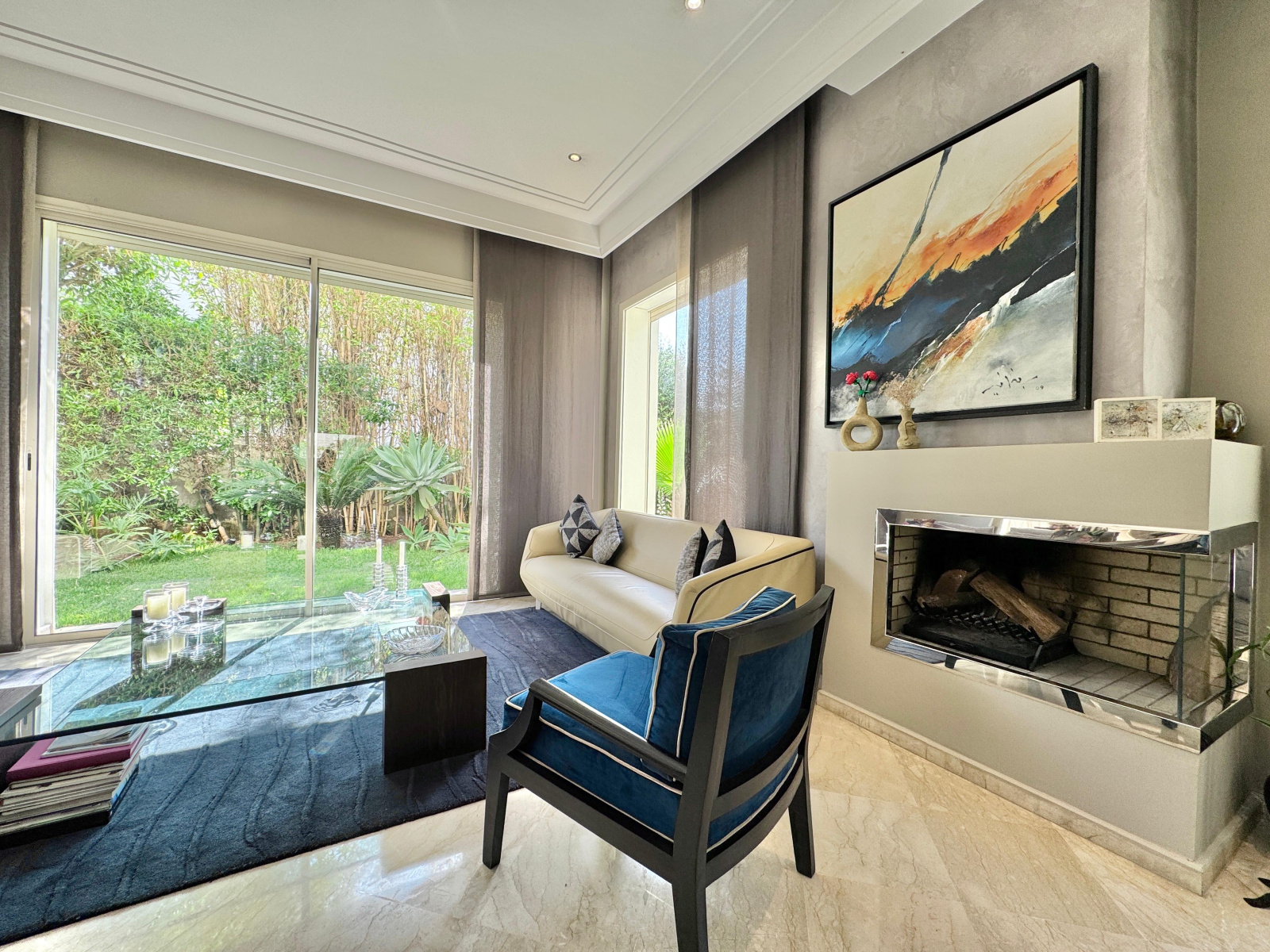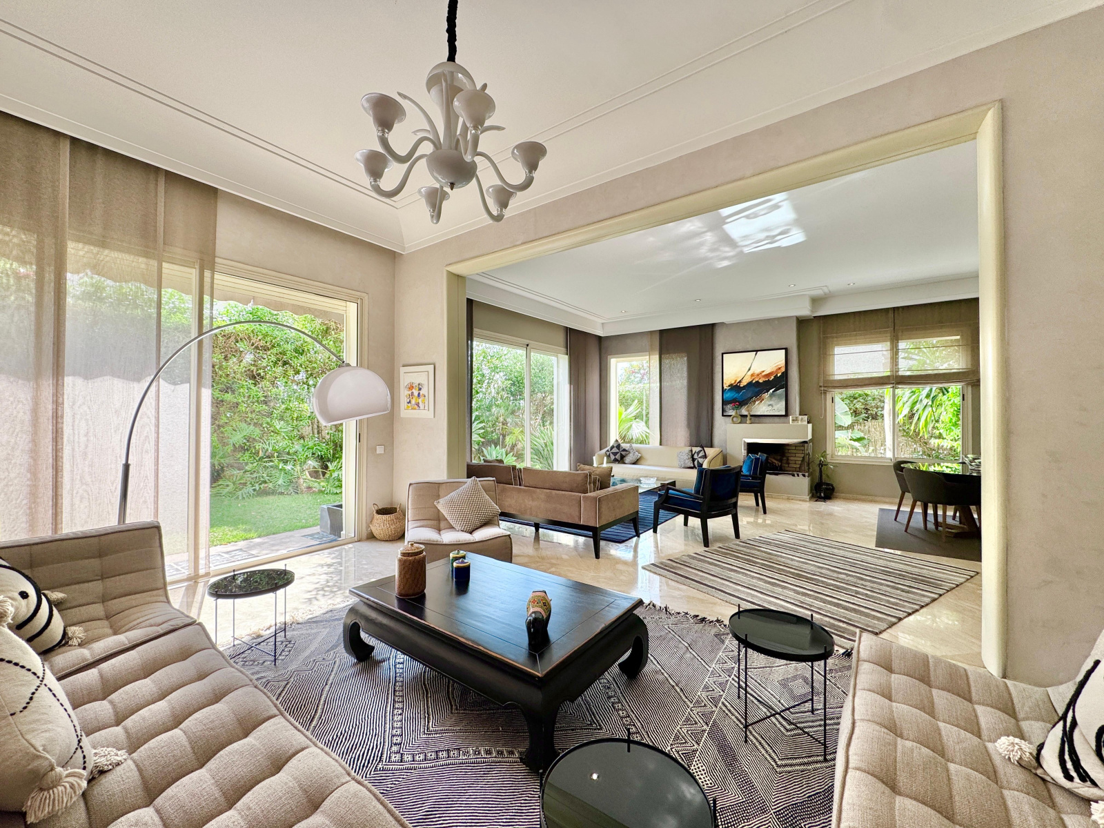 - Un double séjour avec cheminée et un espace salle à manger ouvert sur jardin