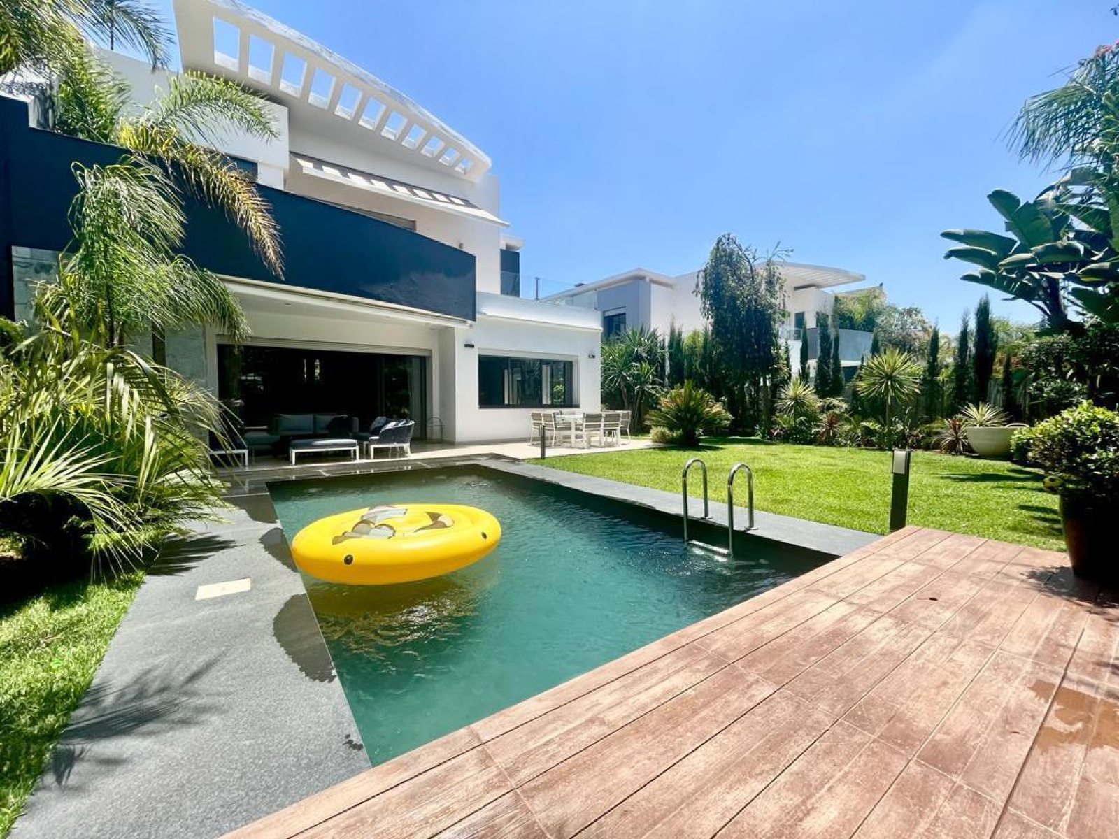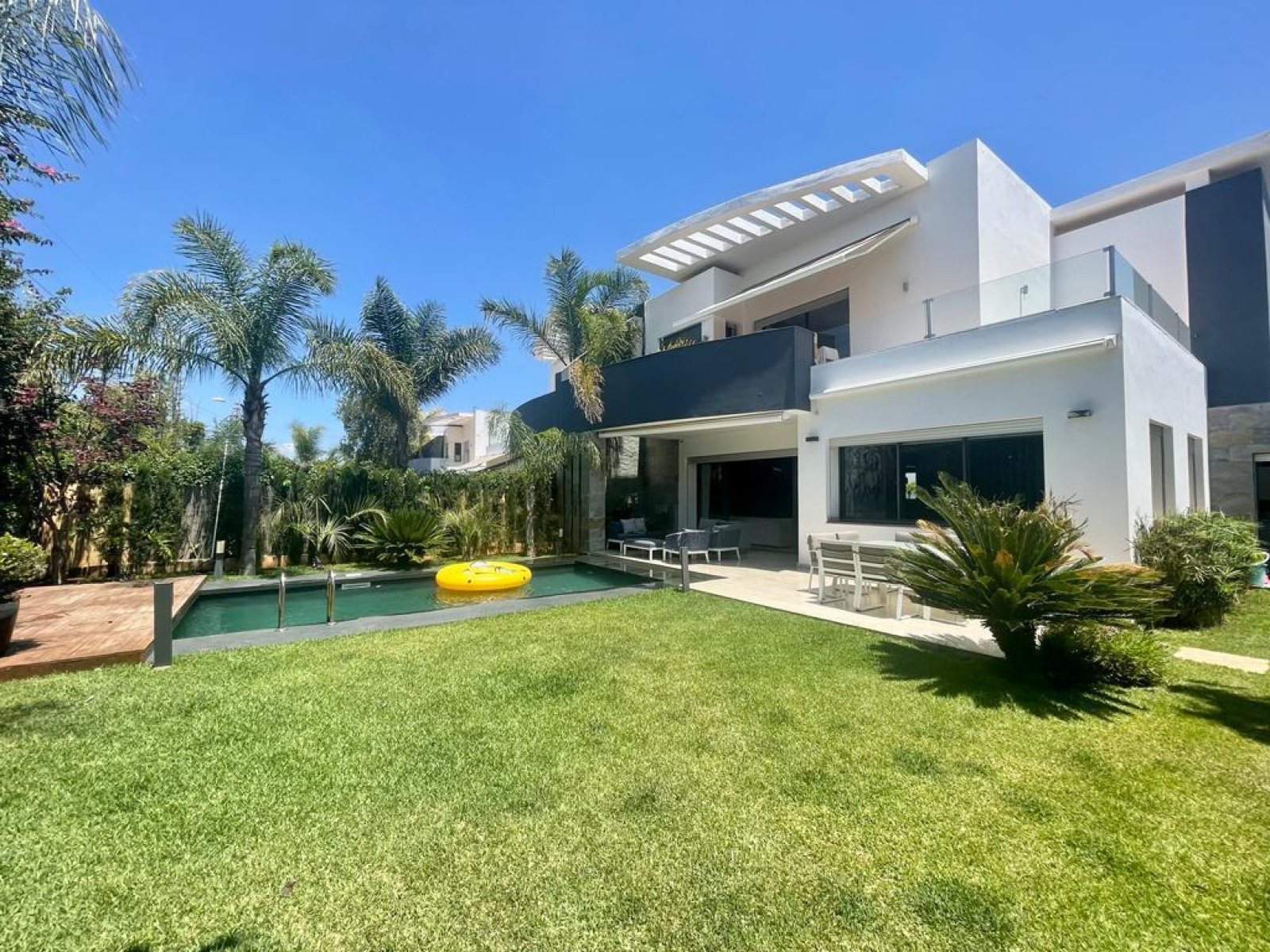 Bouskoura ville - Sublime villa à la vente - 4 chambres - 3 salles de bains - Jardin avec belle piscine - Exposition Ouest.