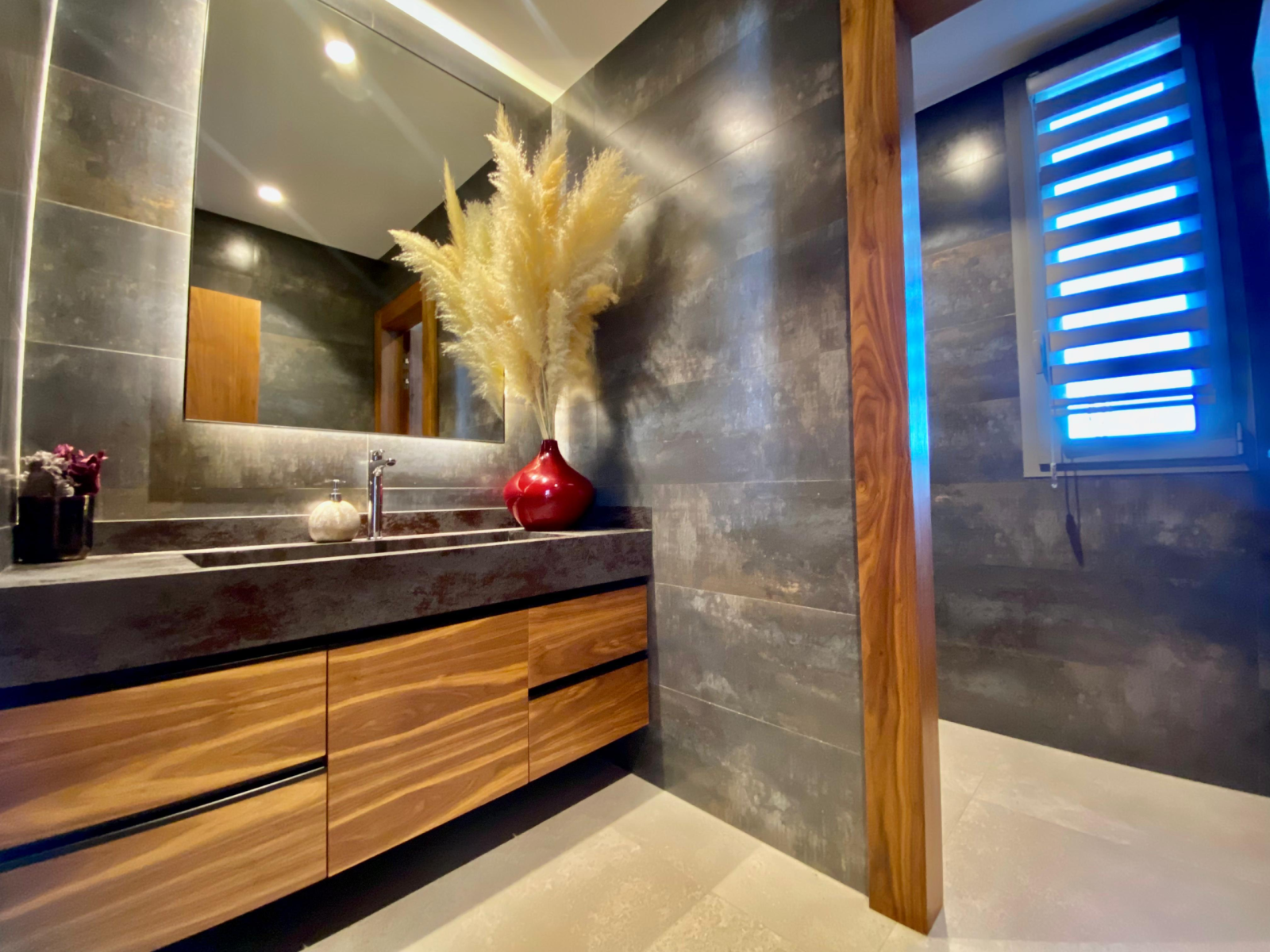 Chauffage au sol dans les salles de bains, 40 panneaux photovoltaïques, climatisation centralisée, piscine chauffée à débordements avec carrelage de Bali authentique.